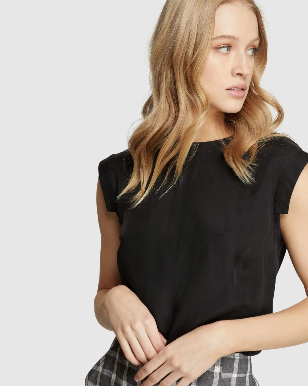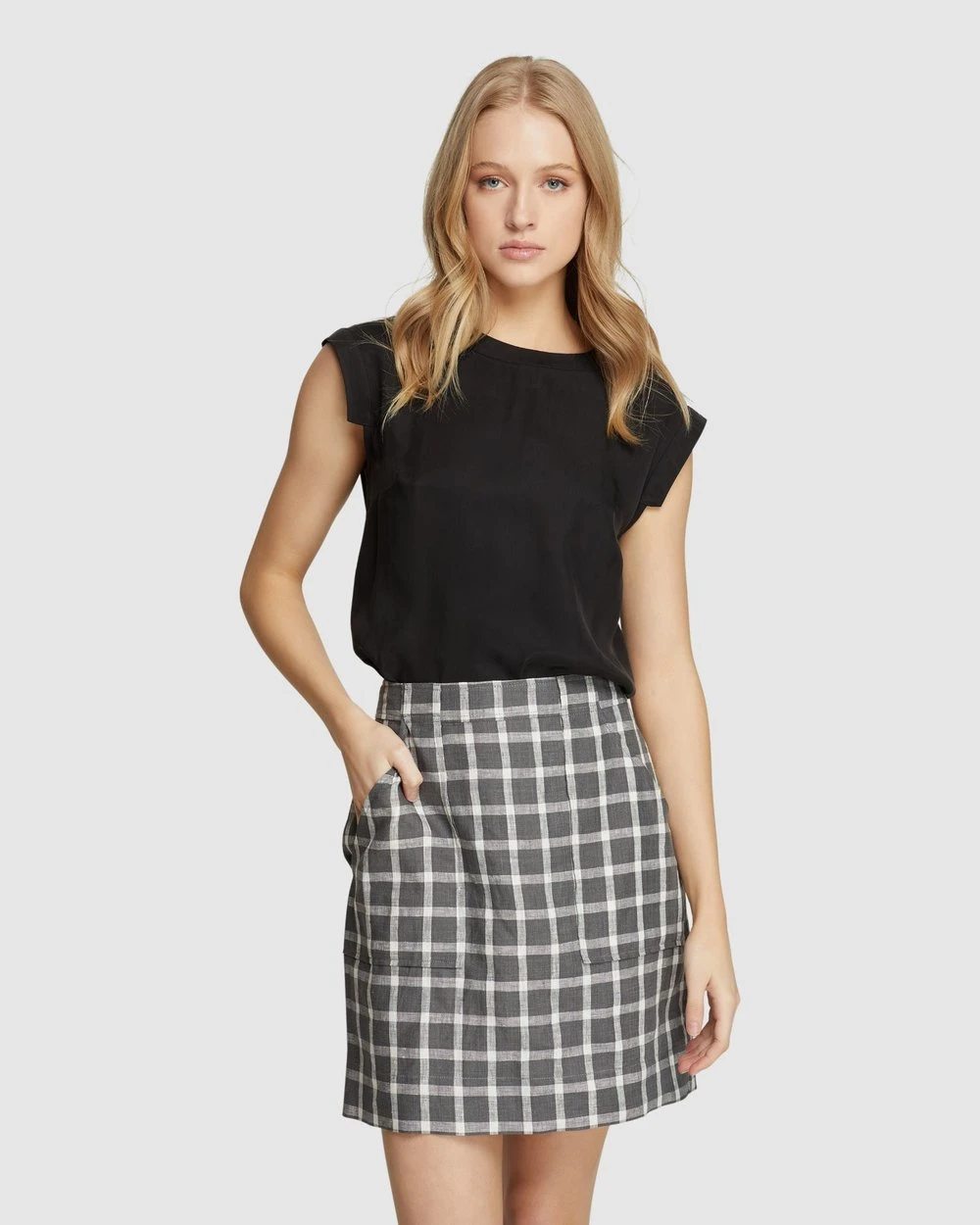 A basic with style, the Skylar Woven Front T-Shirt by Oxford is an elegant and easy-to-wear piece. It is cut in a relaxed fit and features a button-up keyhole closure on the back with capped sleeves and a woven front.