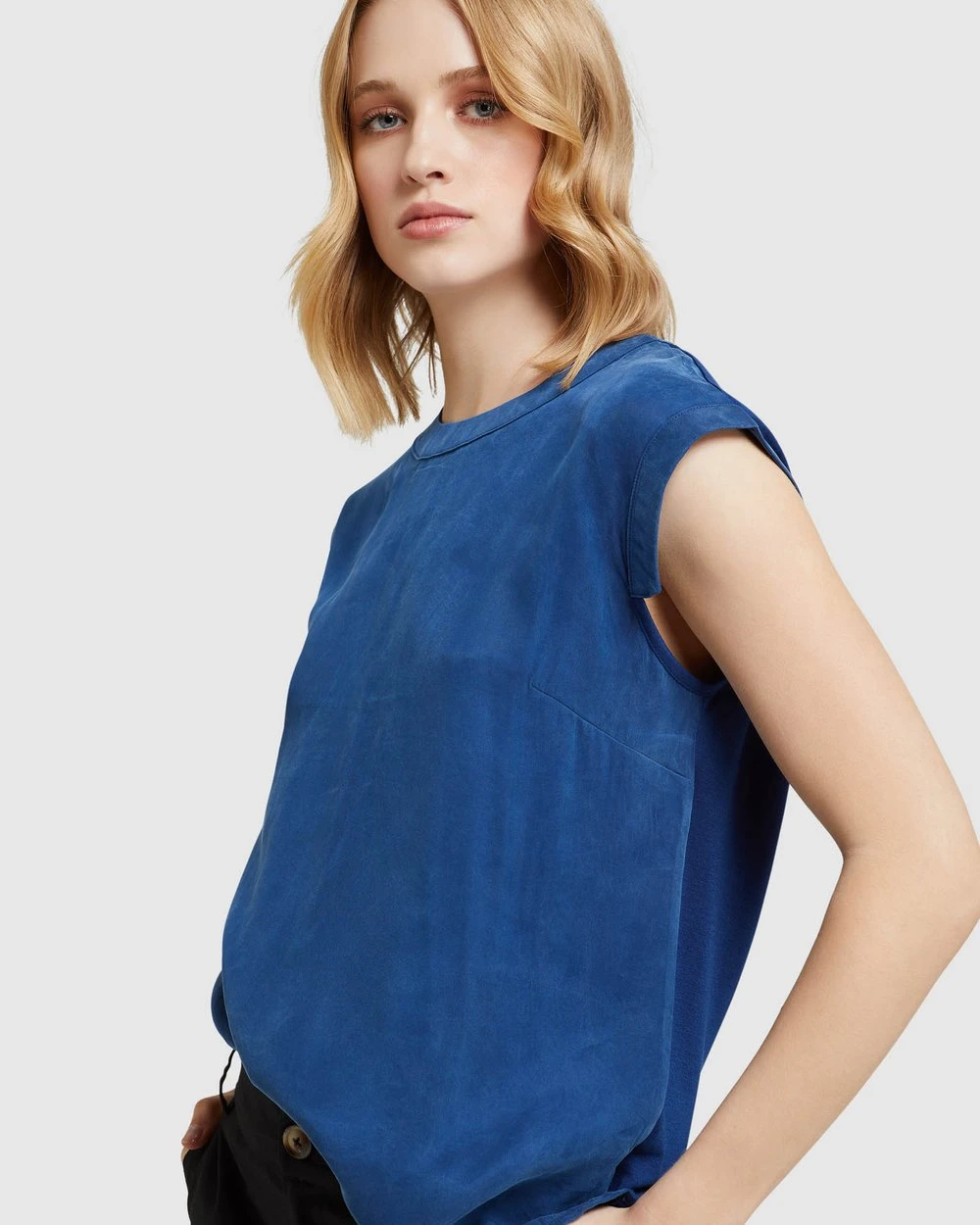 A basic with style, the Oxford Skylar Woven Front T-Shirt is an elegant and easy to wear piece. It is cut in a relaxed fit and features a button up keyhole closure on the back with capped sleeves and a woven front.