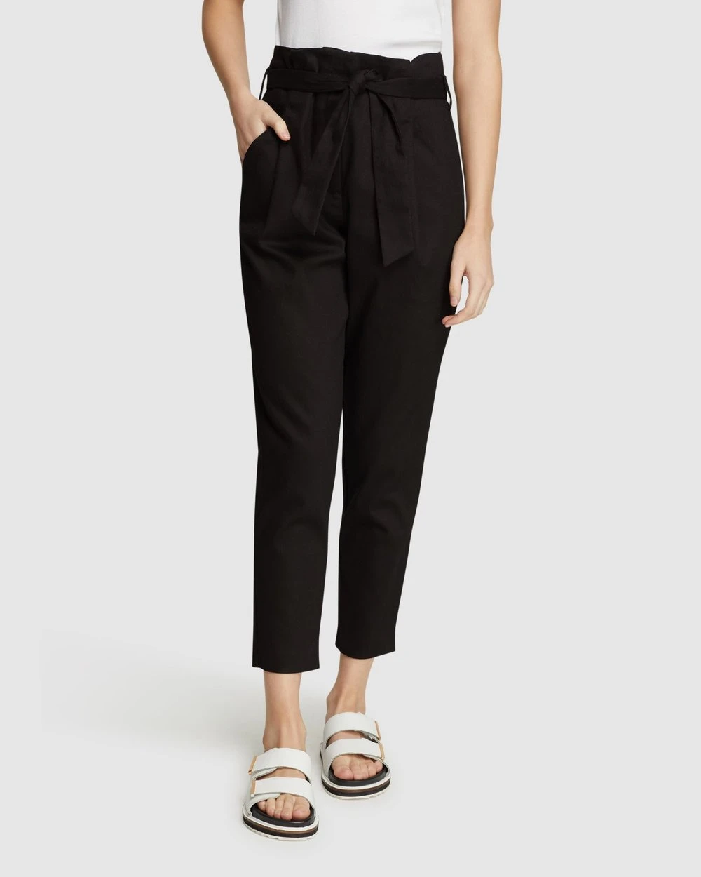 The Sloane Stretch Cotton Paperbag Pants by Oxford are stylish and easy to wear choice. These versatile pants are crafted from a stretch cotton blend and feature wide side pockets, a tapered leg and tie-up belted waist line.