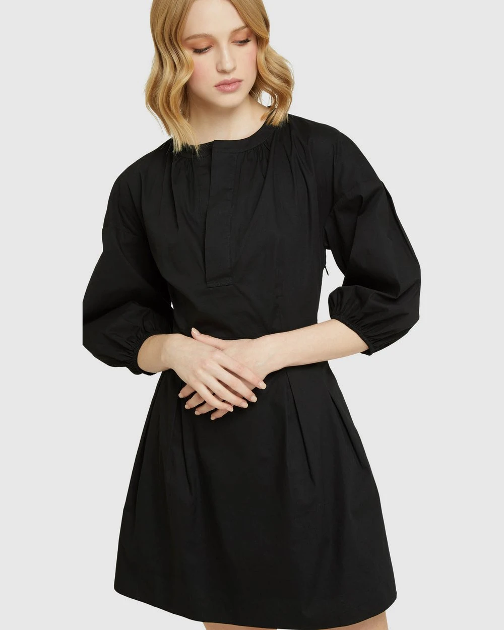 Update your spring wardrobe with the Spector Cotton Poplin Dress by Oxford, an on-trend style that features ballooned sleeves, button-up neckline and elastic cuffs.