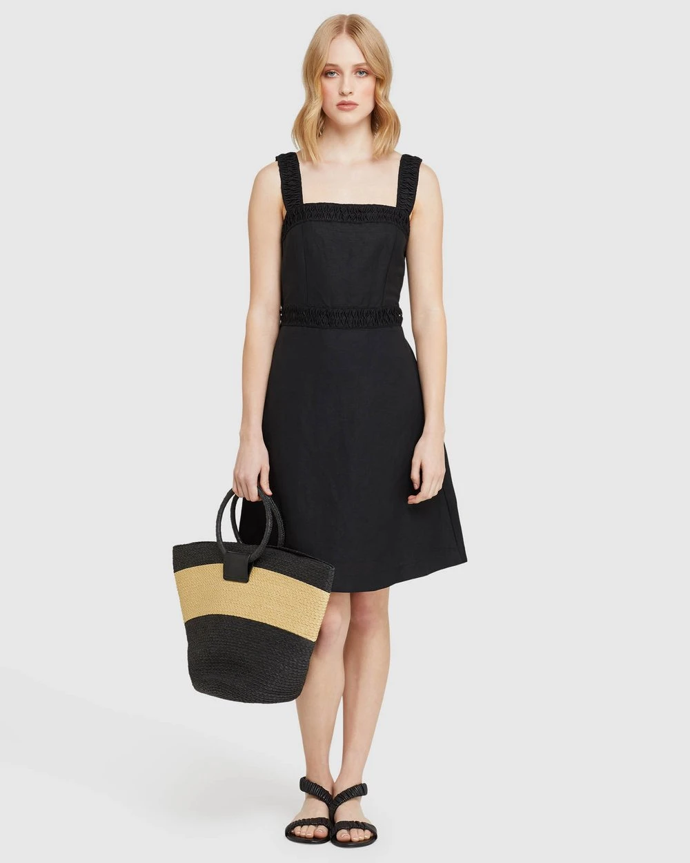 A gorgeous sun dress for all your summer parties, the Tali Lace Trim Dress by Oxford is crafted from a soft linen blend and features a stitched trim detail, deep side pockets and flowy hem.