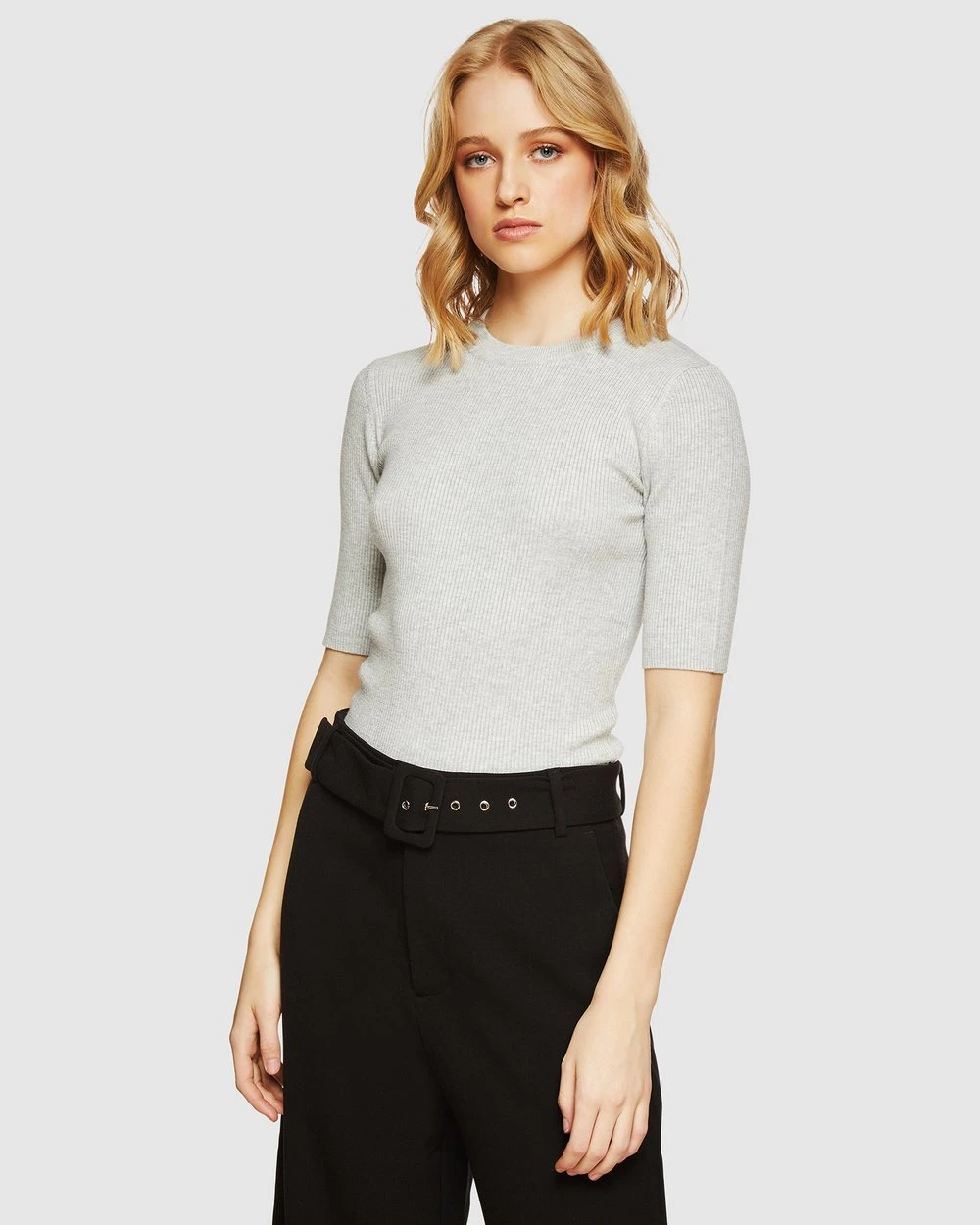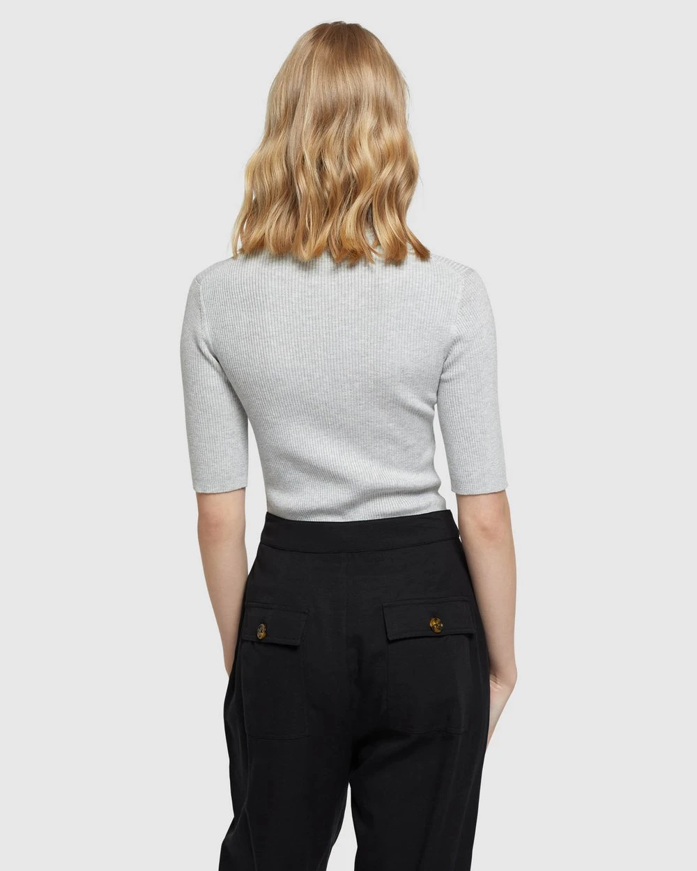 An essential addition to your basics collection, the Oxford Tess Rib Knit is a simple and stylish choice. This versatile ribbed knit is close fitting with some stretch, and features a round neckline and short sleeves. This knit is easily styled back with trousers or a skirt, a handy piece for any occasion.
