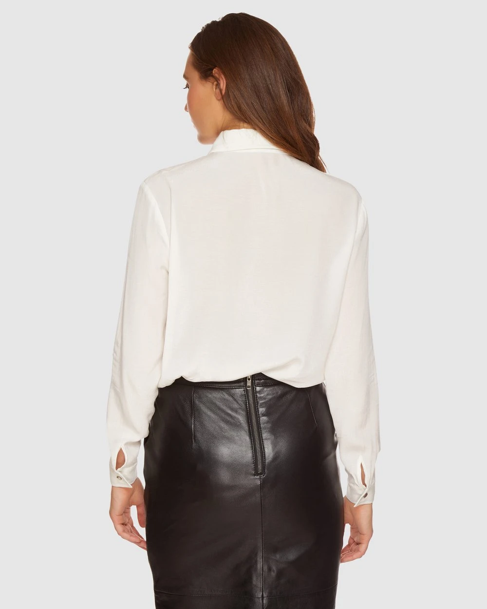 Our model is wearing size AU 8 shirt and usually takes a size 8. She is 175 cm (5’9″) tall with an 82cm (32.5″) bust, a 64 cm (25″) waist and 91cm (36″) hips.