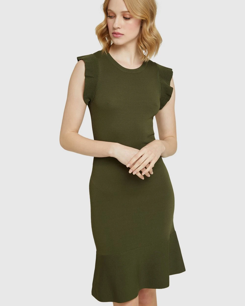 A gorgeous style for all your summer parties, the Victoria Knitted Mini Dress by Oxford is crafted from a stretch knitted blend in a close fit and features a peplum hem, frilled shoulder detail and a fitted waistline.