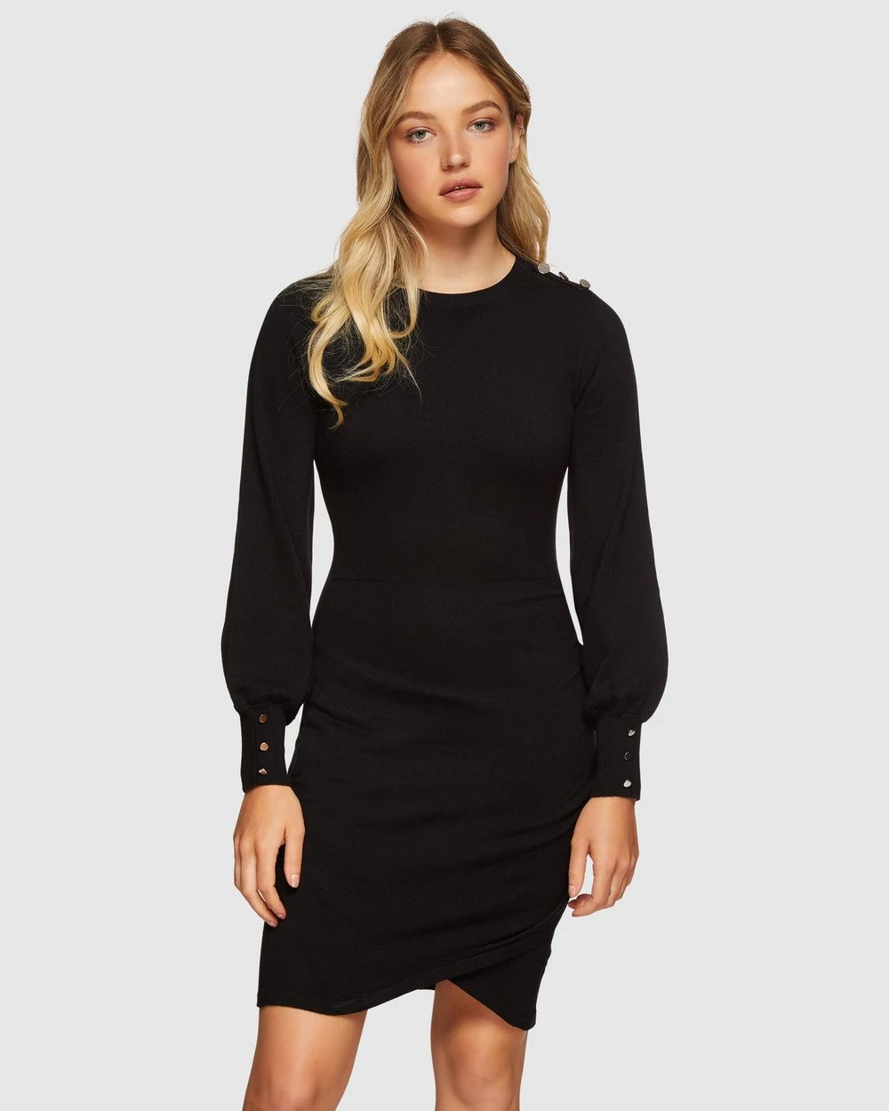 Step out in style in the Oxford Vivian Knitted Mini Dress. This flattering style featurs bell sleeves and cross front detail through the skirt. Ideal for cooler evenings, wear it with boots and leather accessories for a chic weekend look.