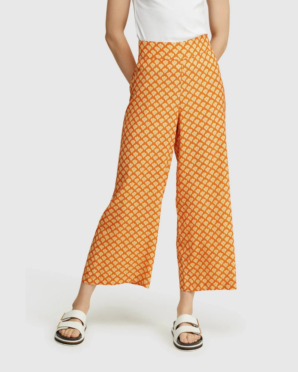You’ll love the Zaira Printed Crop Pants by Oxford for work or play. These light summery pants are cut in a relaxed fit and feature a geometric pattern, wide leg and enclosed side zip.