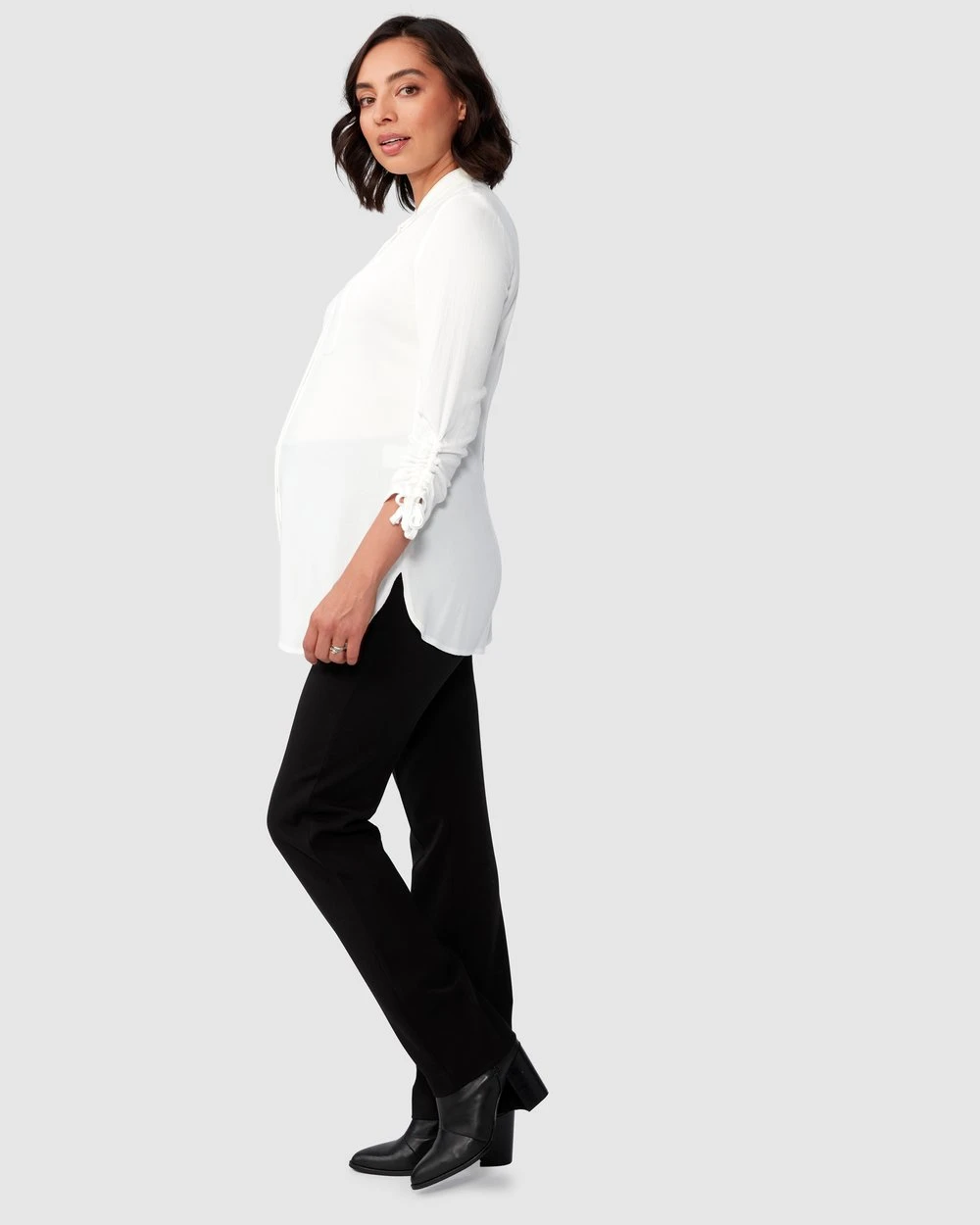 Proudly made in Australia the London Suiting Pants from Melbourne maternity brand Pea in a Pod are the ideal piece for your workwear wardrobe or for those who love a dinner party pants. They feature a soft stretch waistband and modern straight leg with front crease, they further boast back darts to ensure a flattering fit and are designed for all stages of pregnancy and beyond