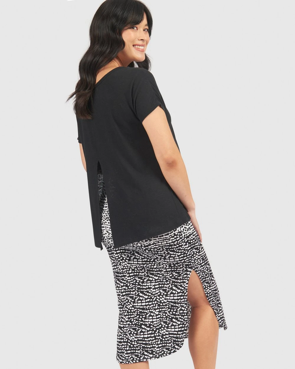 Proudly made in Australia, the Sophia Skirt from beloved Melbourne maternity brand Pea in a Pod is a must-have this season! Designed to flatter and be as comfy as possible (even if you’re not pregnant). Sophia features elastic in the side seams and in the waist to provide support and a comfy fit allowing you to get on with your day and move freely during pregnancy and long after.