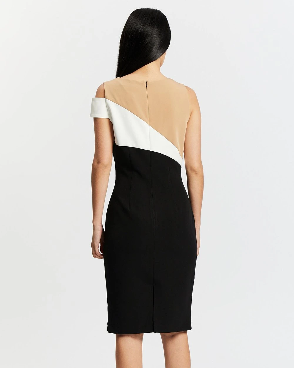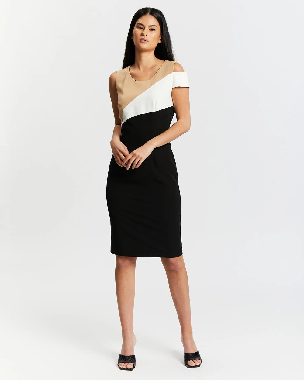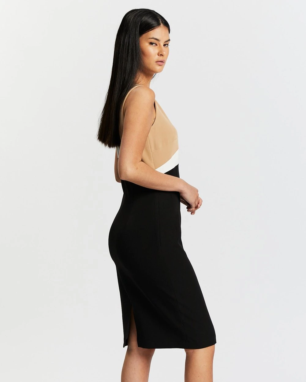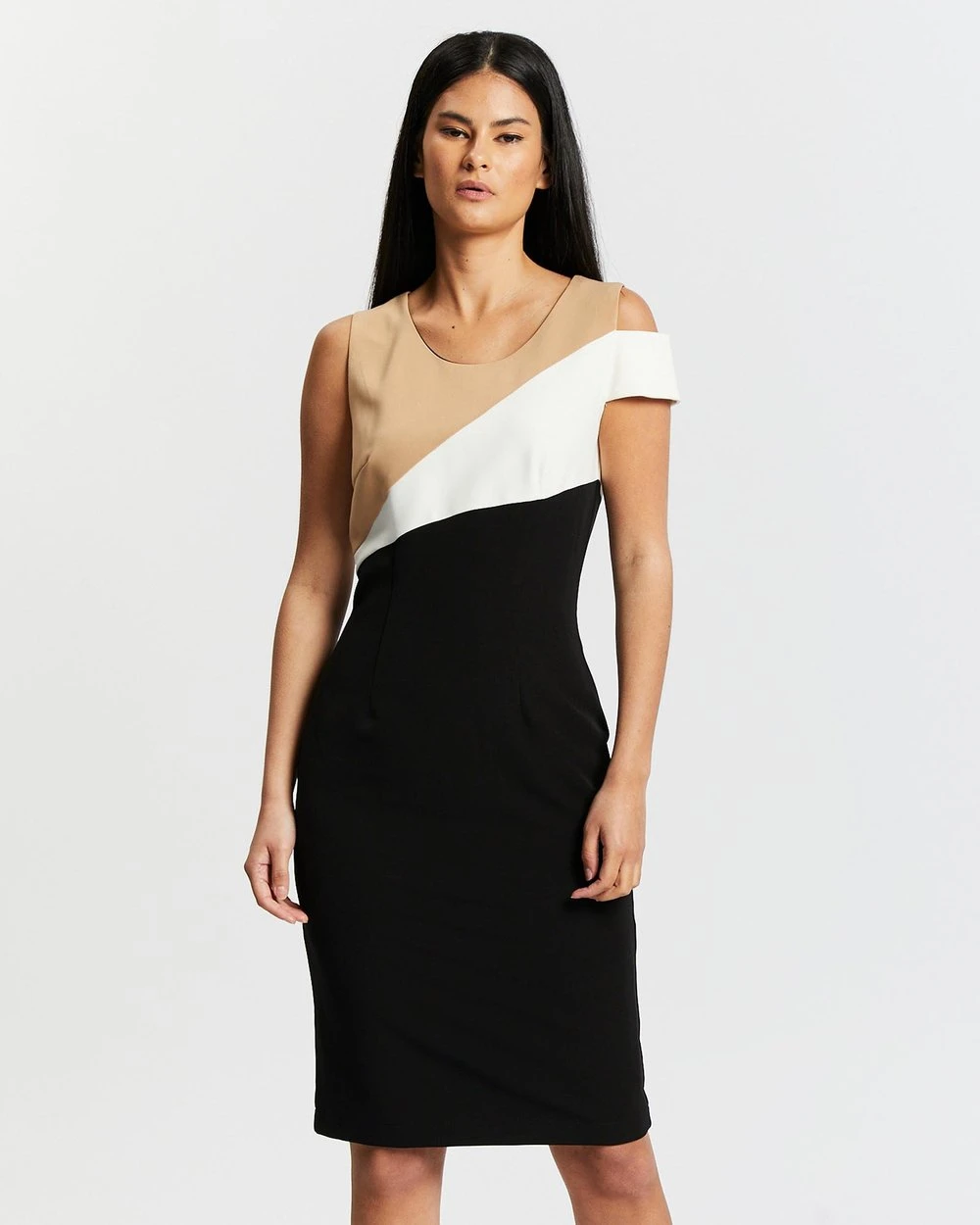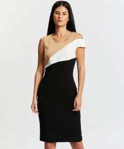 Pink Ruby Colour Block Midi Dress Black, Beige & White
