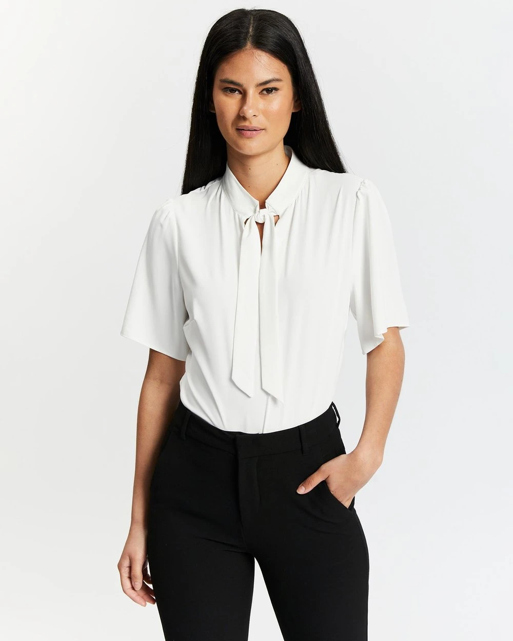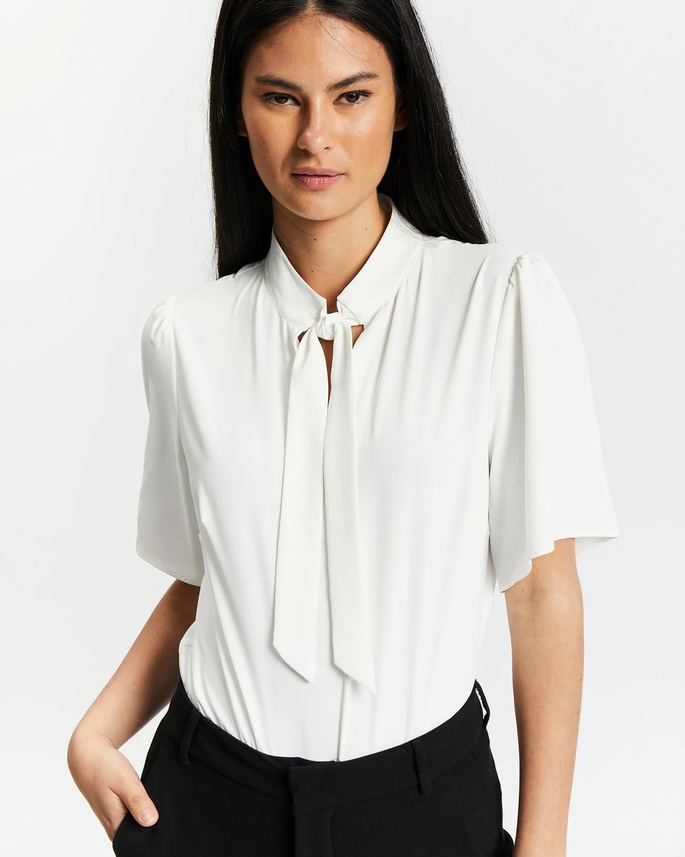 – Pussy bow detailing