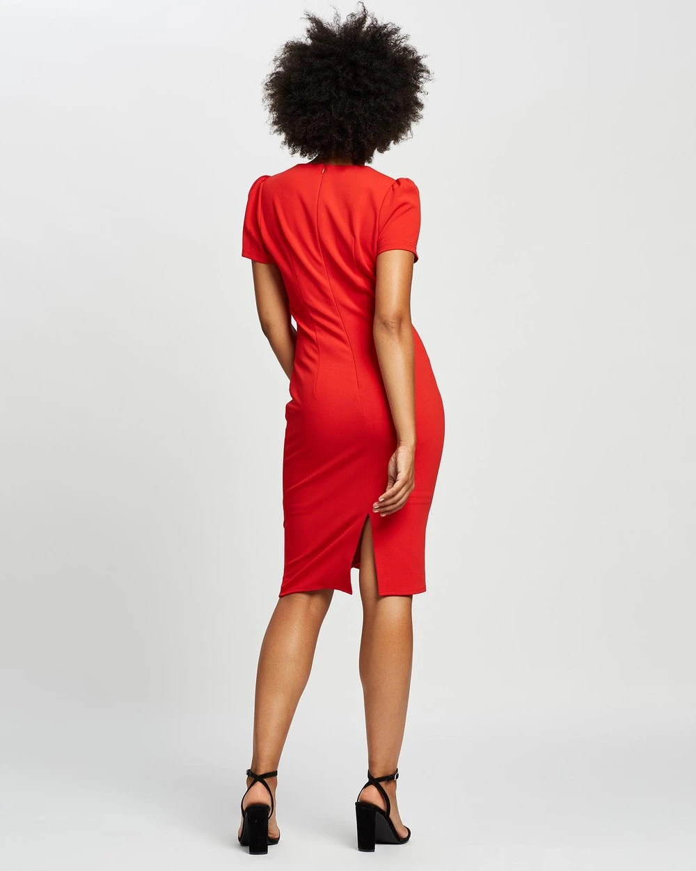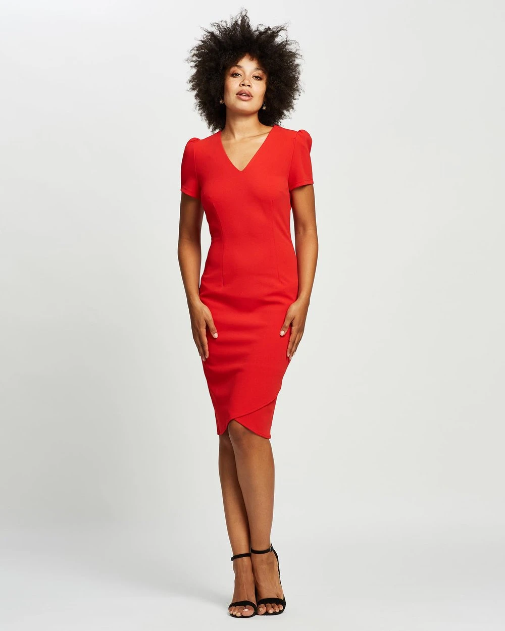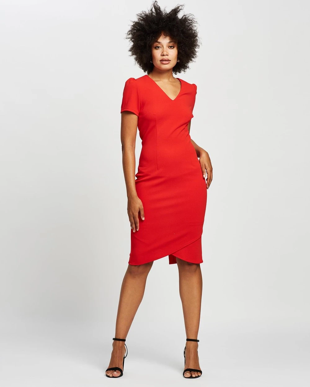 Take the Pink Ruby Sienna Petal Dress from desk to after-dark with the addition of an ankle-strap block heel and hoop earrings.