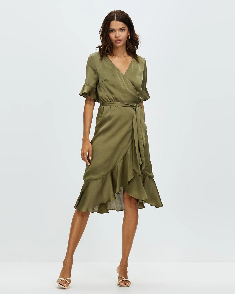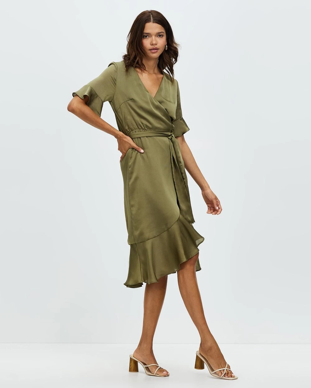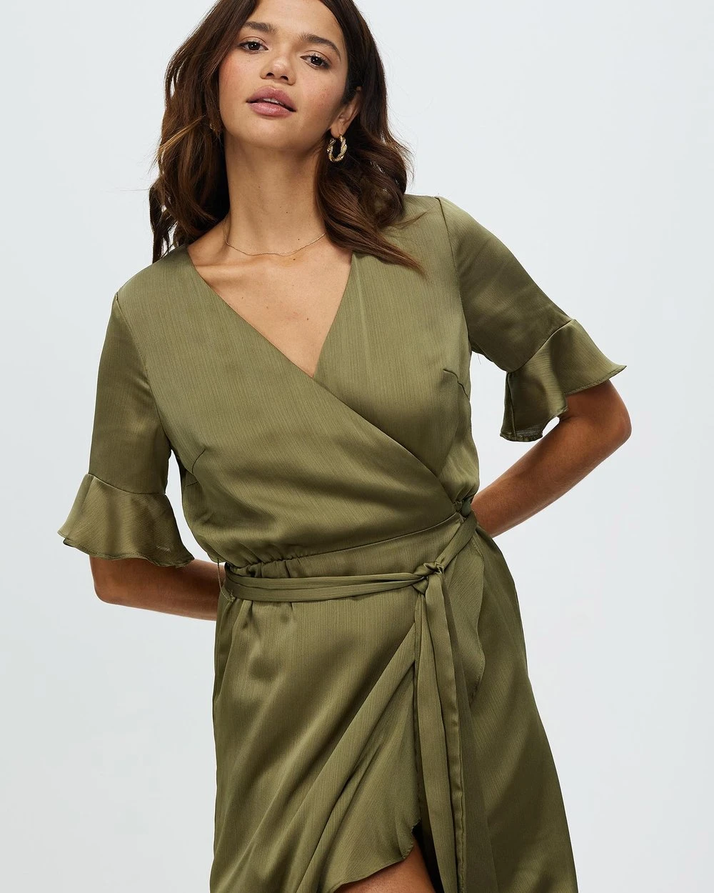 – Wrap design with rouleau button fastening