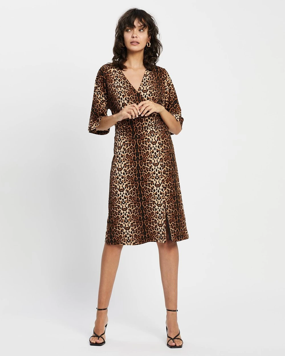 Subtly cinched with a gathered waist panel, the Turn It Up Crossover Dress from Pink Ruby can be taken from day to night with the addition of a tonal stiletto pump or mid-low heeled mule.