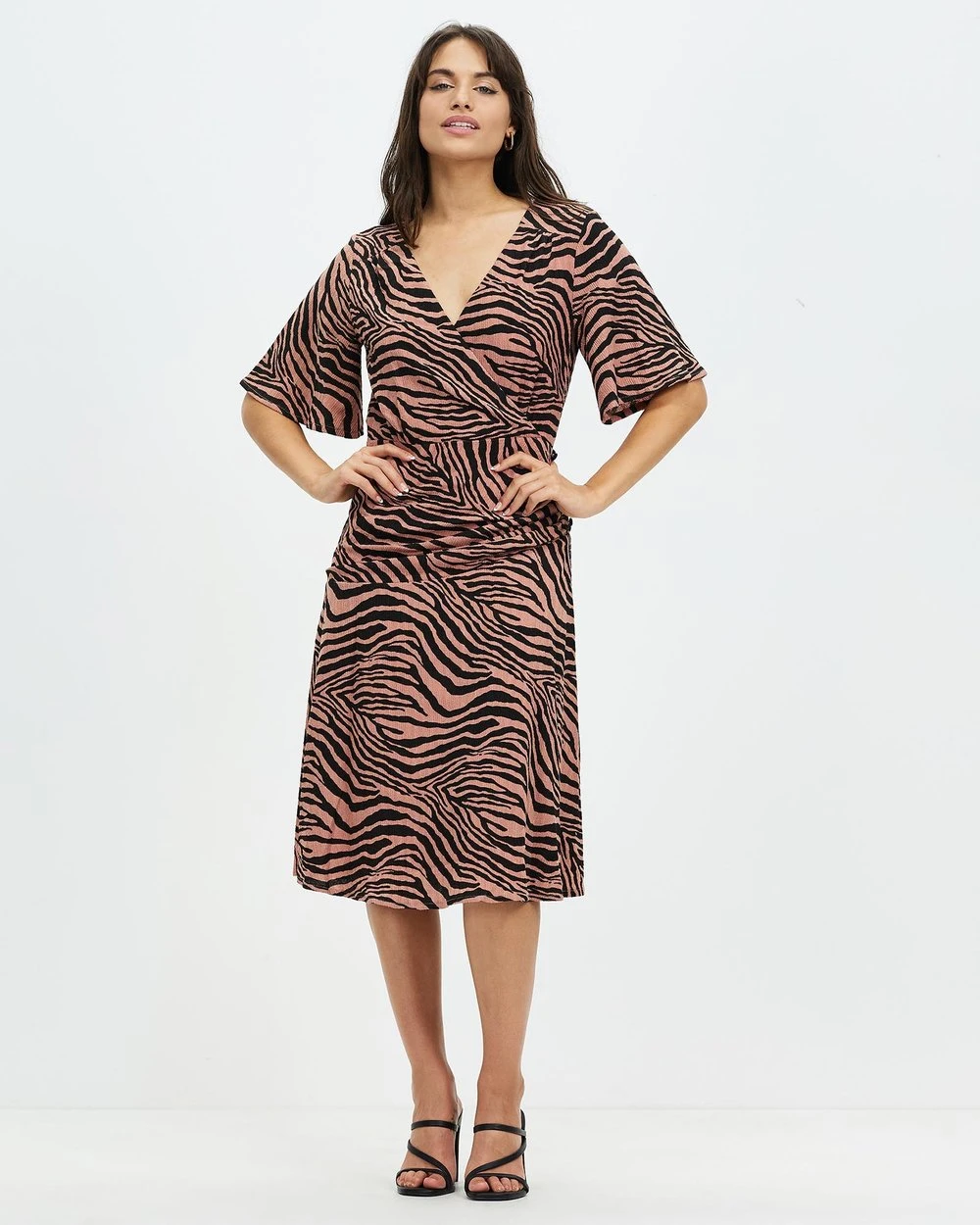 – Elbow-length flutter sleeves
