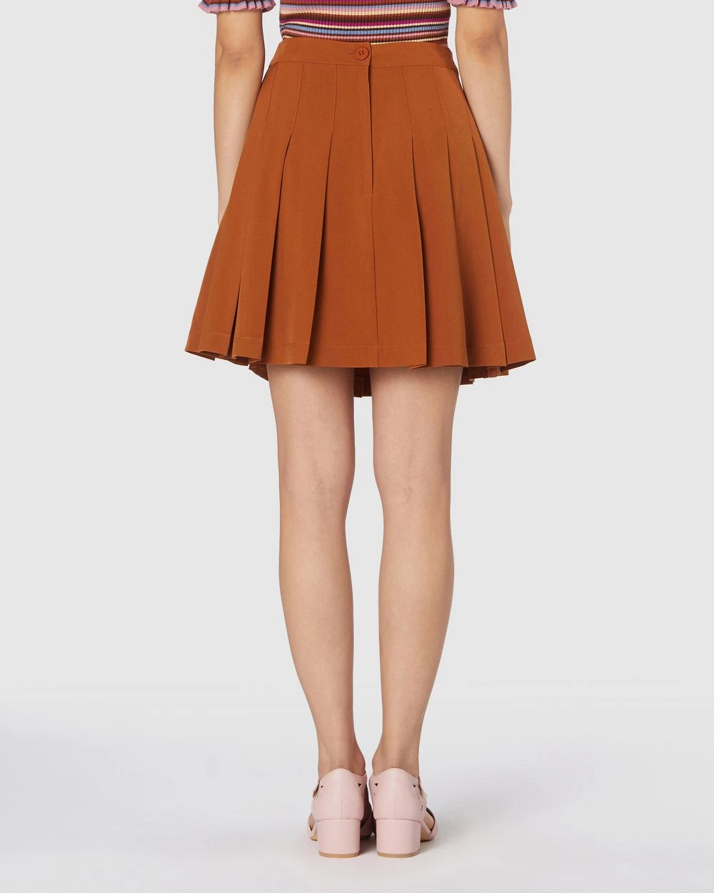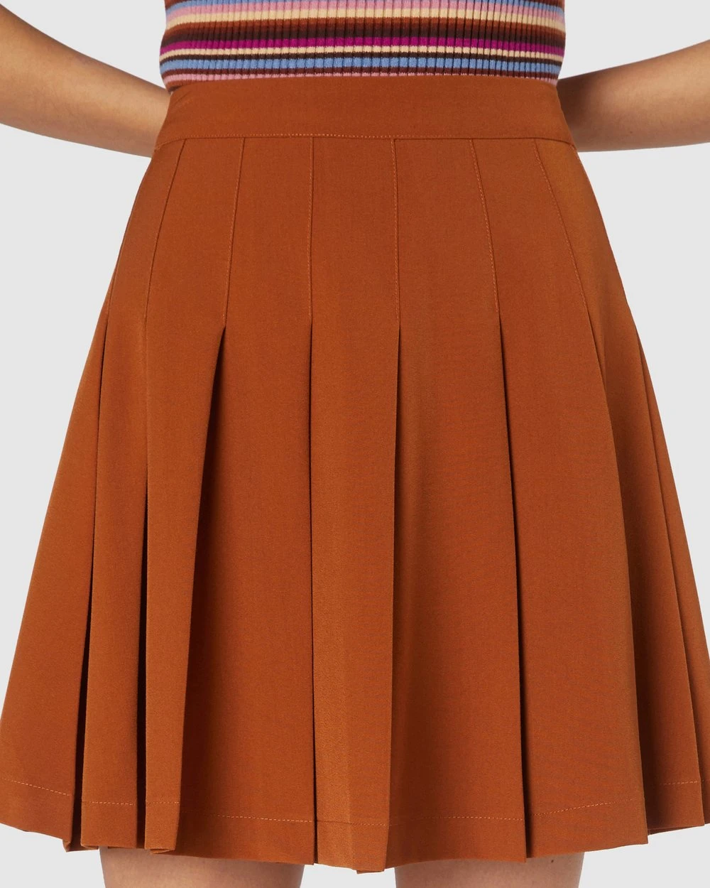 The Rita Pleated Mini Skirt by Princess Highway is a high-waisted pleated mini skirt. This skirt has polyester blend fabric, mini skirt with pleating, high-waisted rise and a hidden zip and button closure at the back.