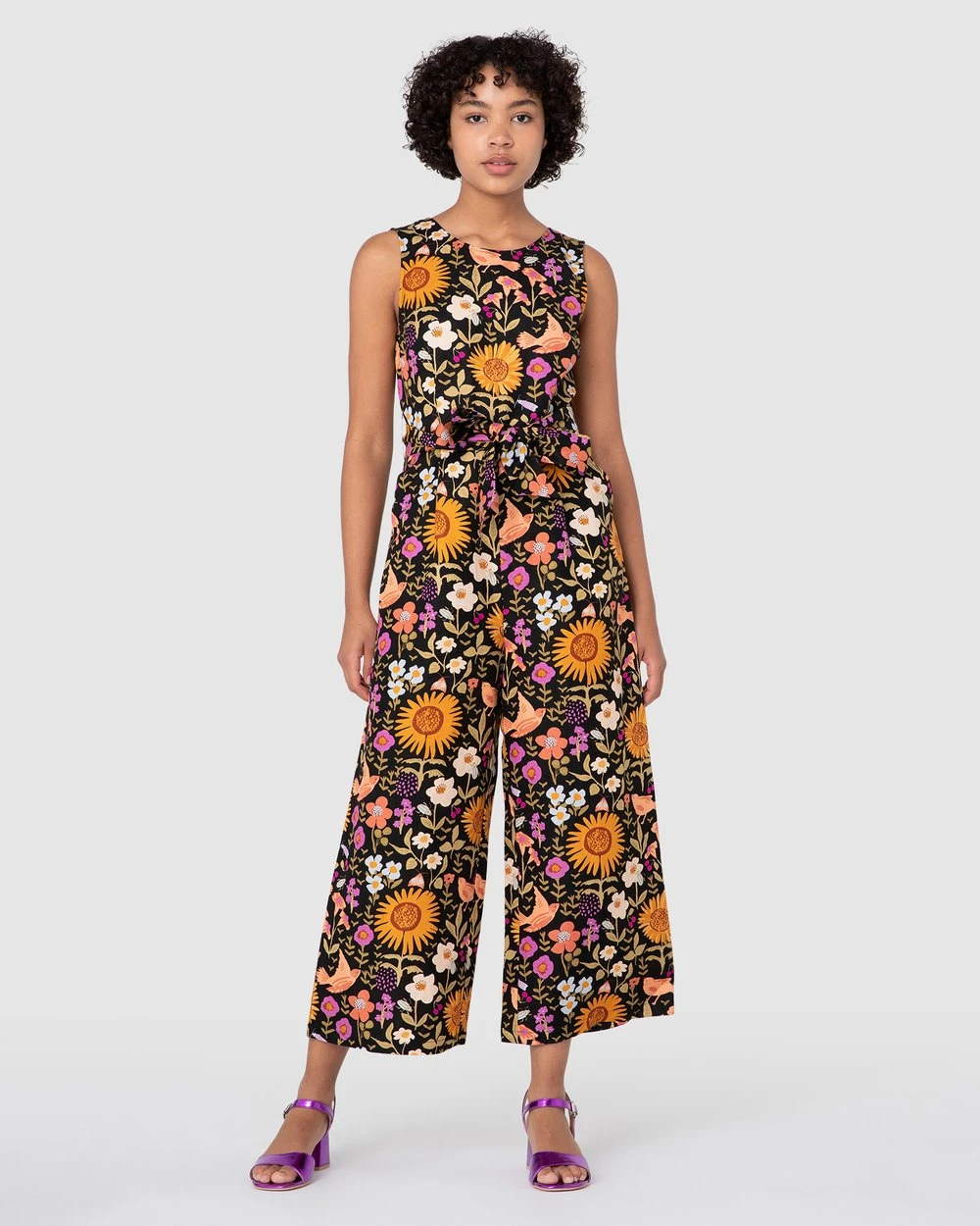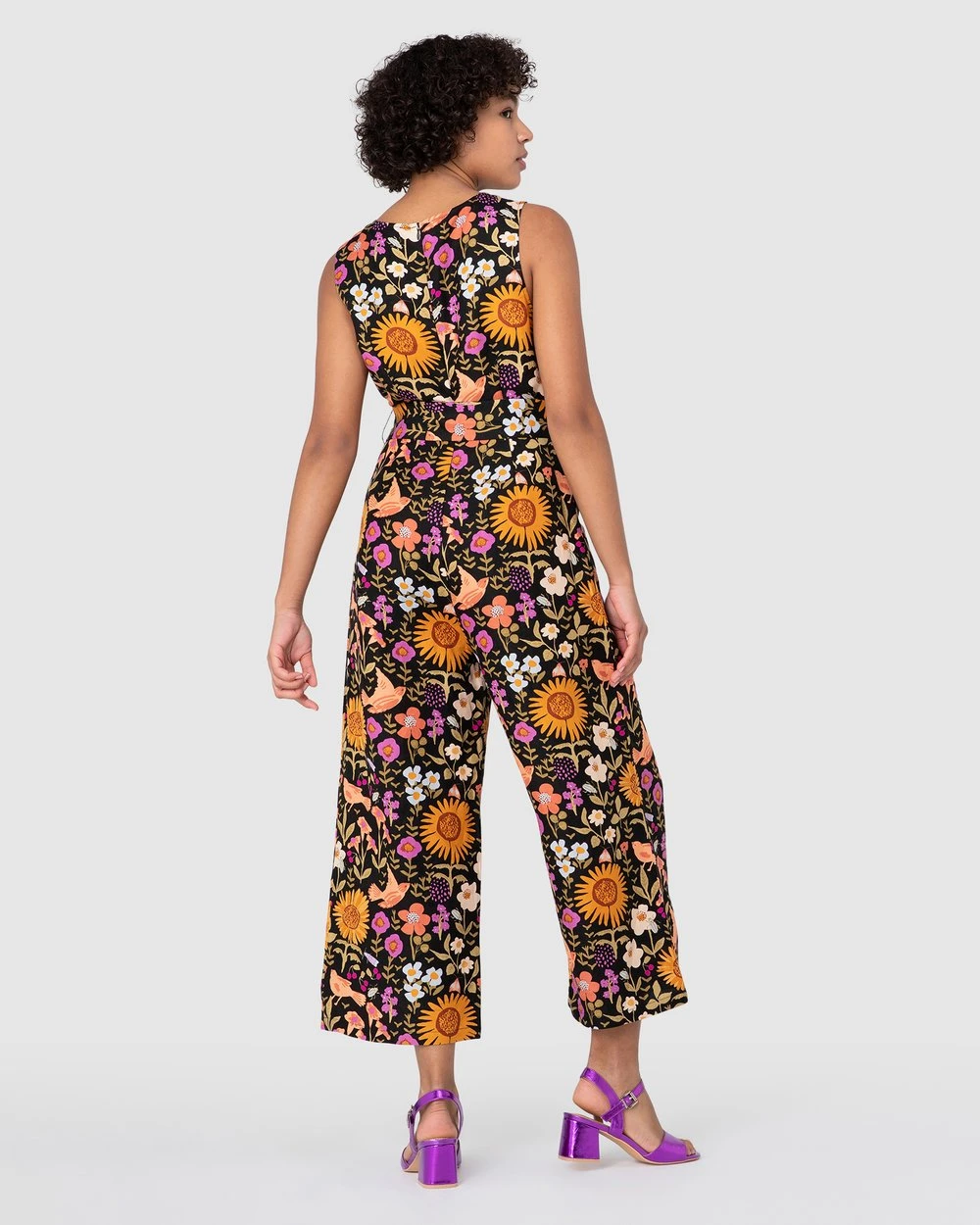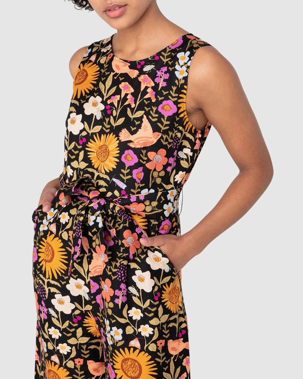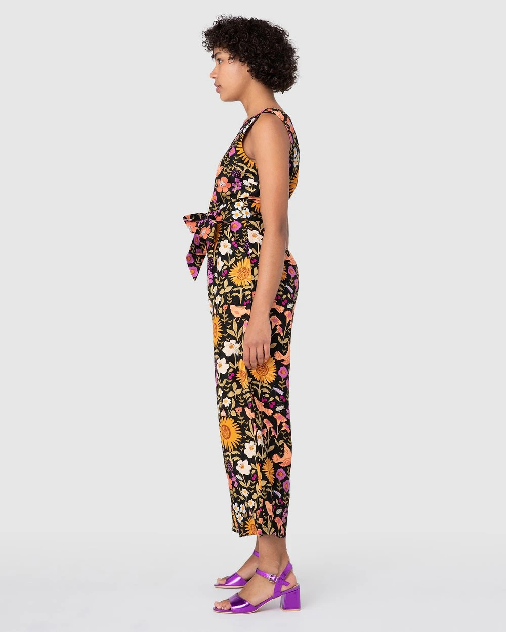 The Wild Garden Jumpsuit by Princess Highway is a sleeveless floral jumpsuit. This jumpsuit has softened linen viscose blend fabric, a sleeveless bodice, removable waist tie, hidden back zip, exclusive princess highway delightful wild garden print and a cropped wide leg cut.