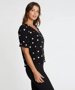 Atmos&Here Claira V-Neck Blouse Black Polkadot