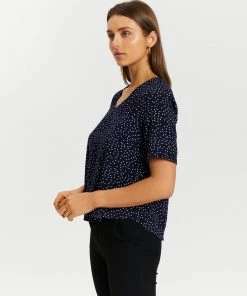Atmos&Here Sophia V-Neck Blouse Dark Blue Polkadot