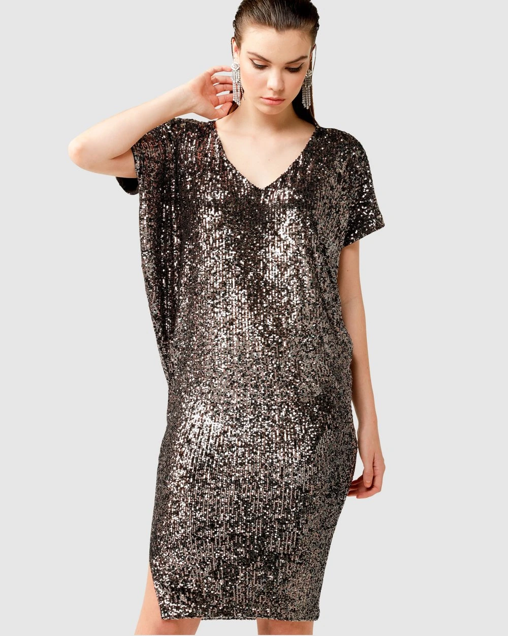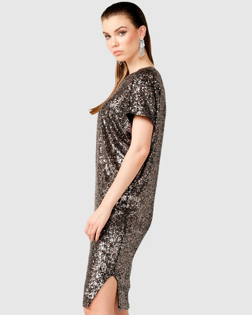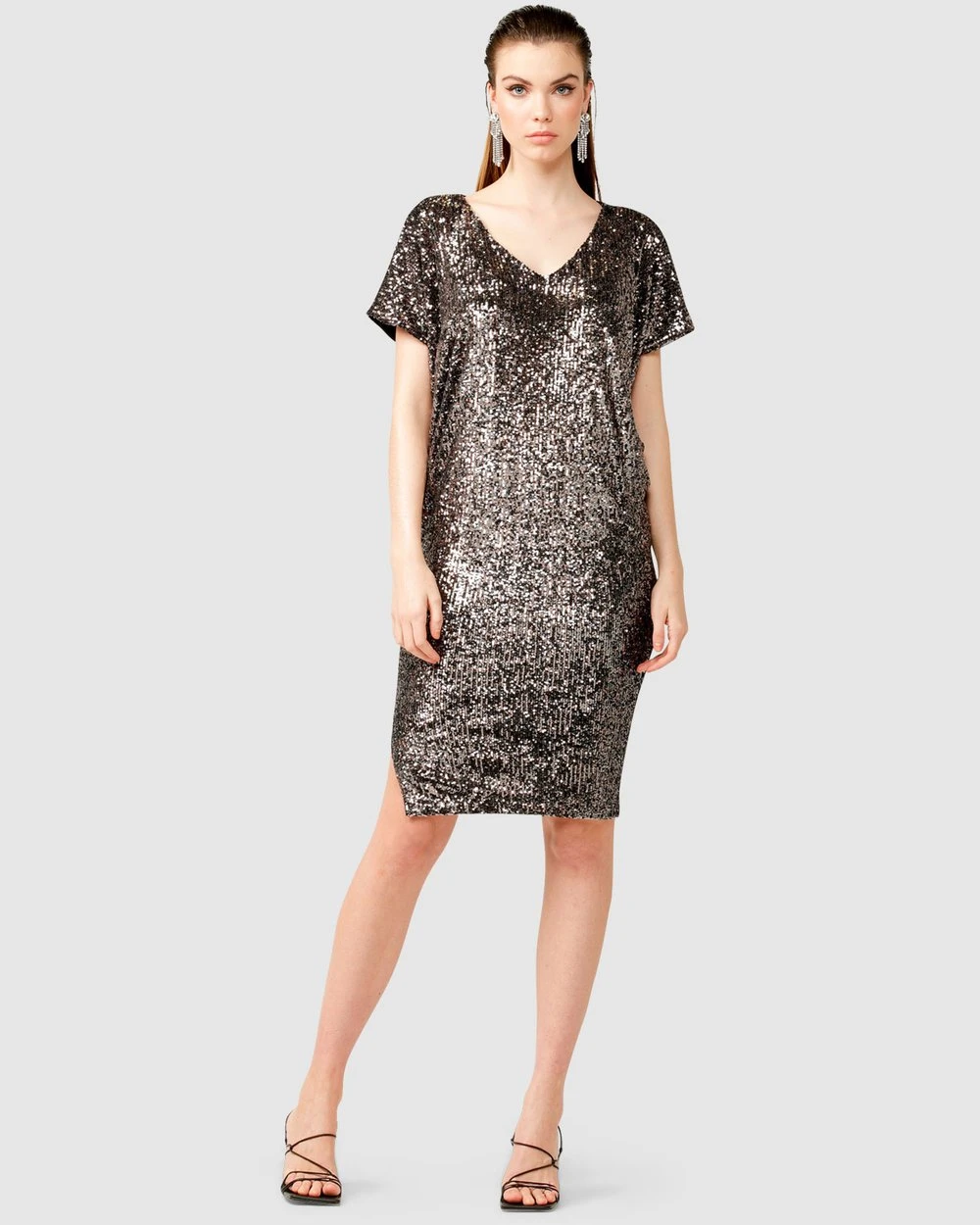 Dazzle at your next special event in this stunning sequined embroidered dress by Australian Designer SACHA DRAKE! Cut from a premium jersey fabrication, the Antilles Dress will have you feeling sophisticated with maximum comfort at your next event. This style is reversible so you can wear either as a V-neck or Boat neck depending on your preference.
