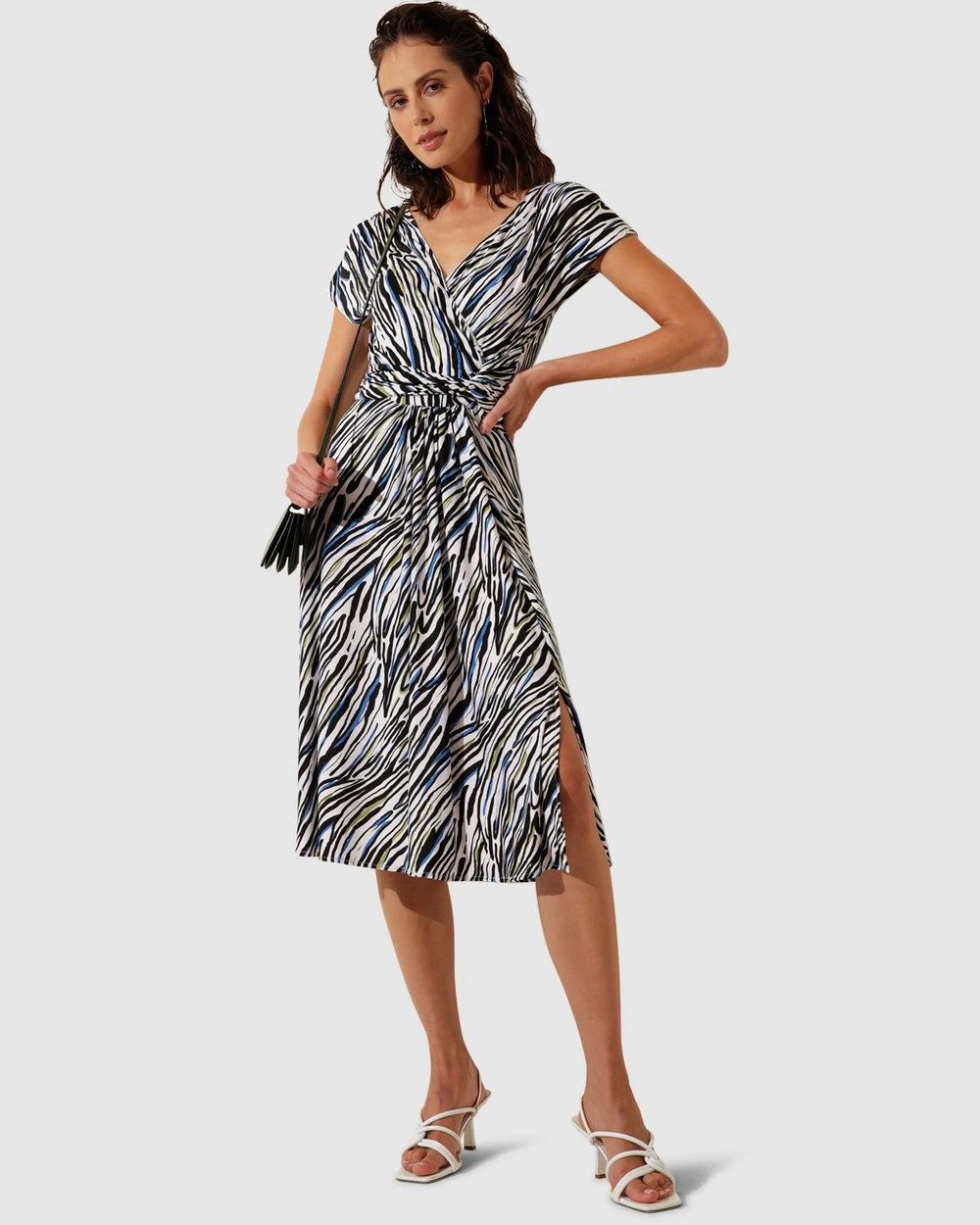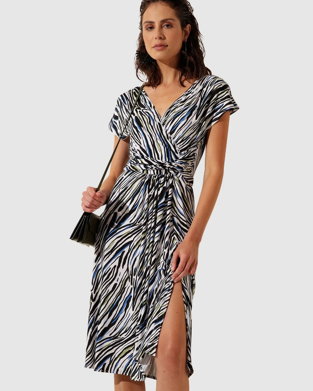 Elevate your wardrobe with a pop of print this season with the Boardwalk Dress by Australian Designer SACHA DRAKE! Crafted from premium stretch jersey, this style showcases a gorgeous faux wrap upper that accommodates to your body that flows into an A-line skirt that will flatter the hips in a gorgeous zebra print.