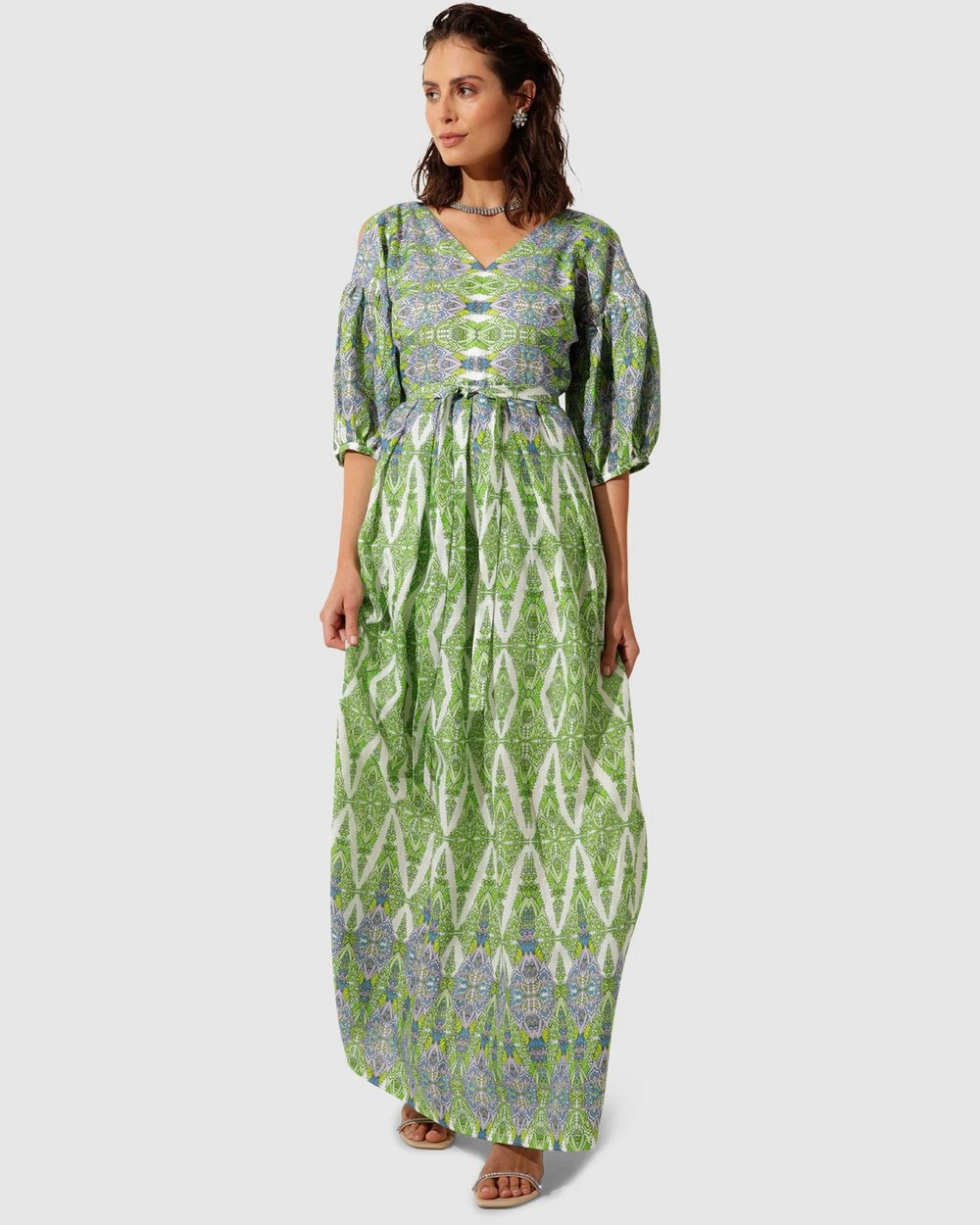 Our endlessly chic Dandelion Floats Maxi Dress by Australian Designer SACHA DRAKE is sure to become a favourite this season. This floaty style features a half balloon sleeve and a gorgeous swish ready A-line skirt that moves with you as you walk. The lightweight fabric will keep you cool all season.