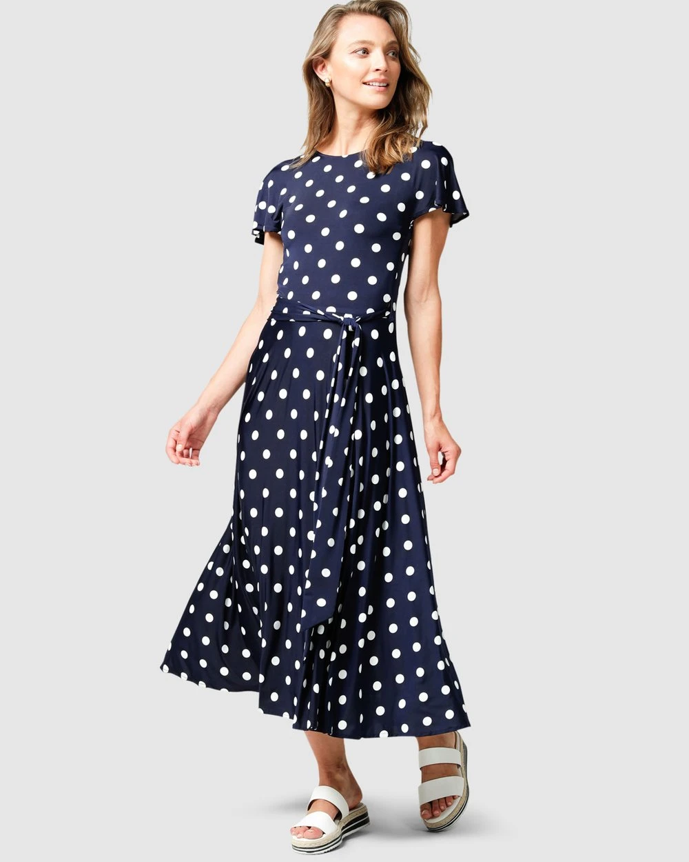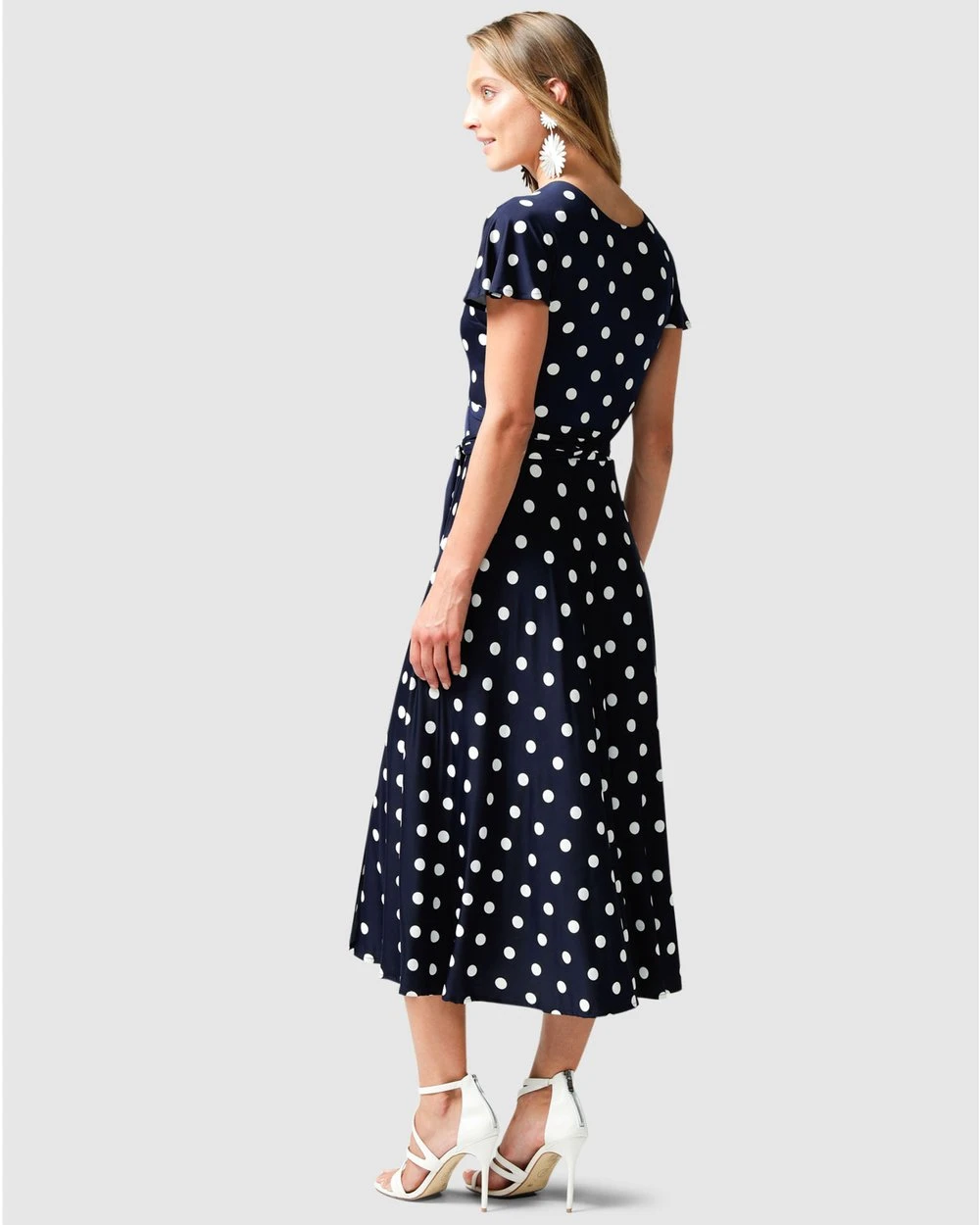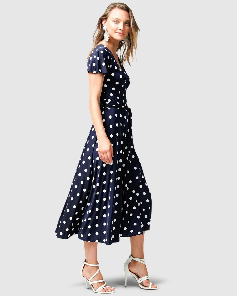 An eye-catching daytime option, the Reverse Wrap Dress by Australian Designer SACHA DRAKE will be your go-to dress for many occasions. Cut from a stretch jersey fabric that floats with every step, this style exudes effortless appeal with its navy white spot print and flowy wrap silhouette. Team this dress up with heels for the office or with flats on those Summer days watching the sun go down or take on your next holiday away!