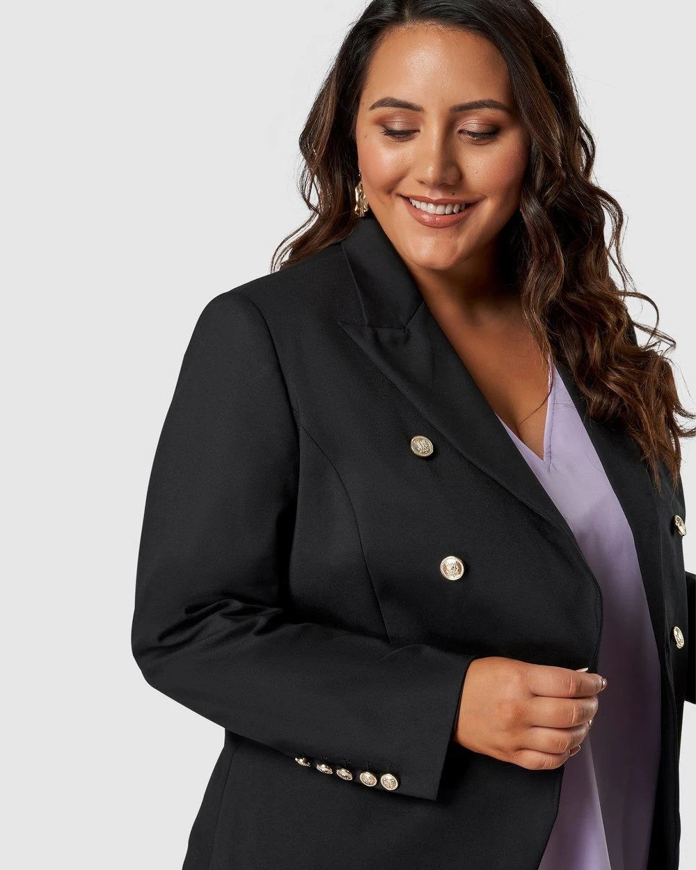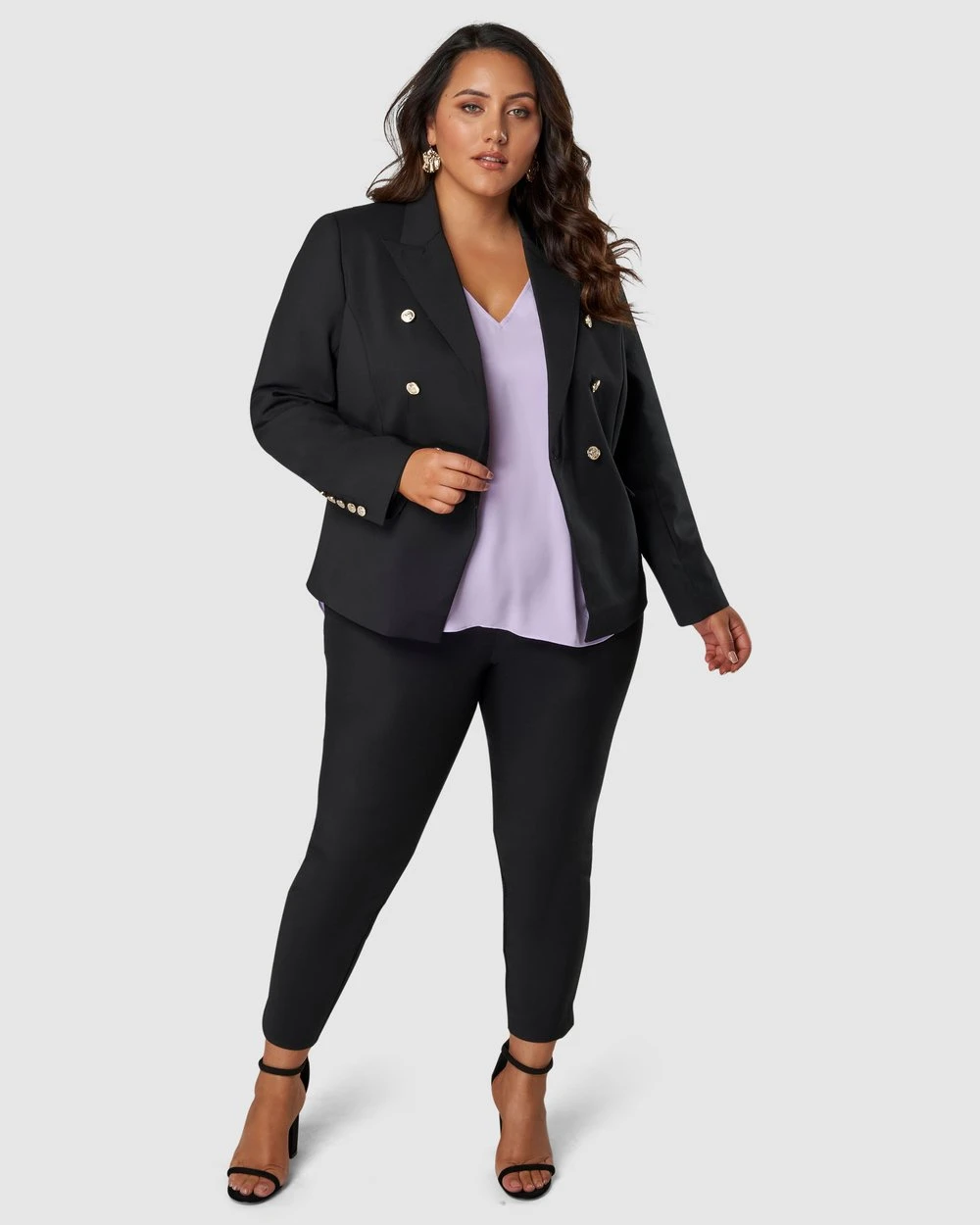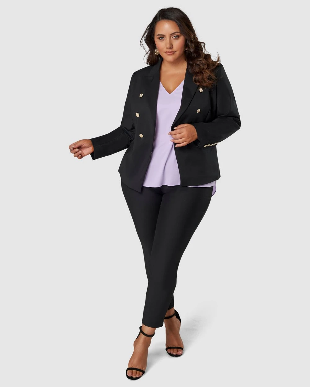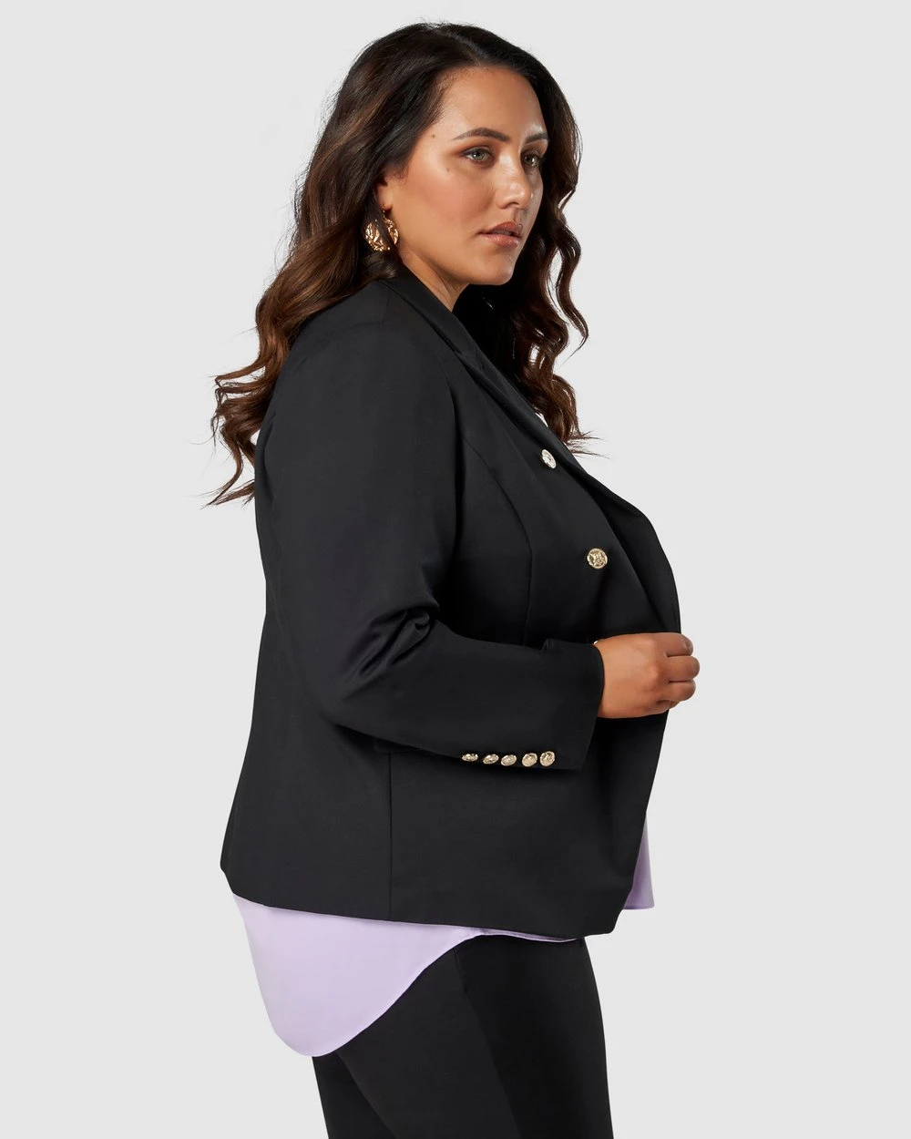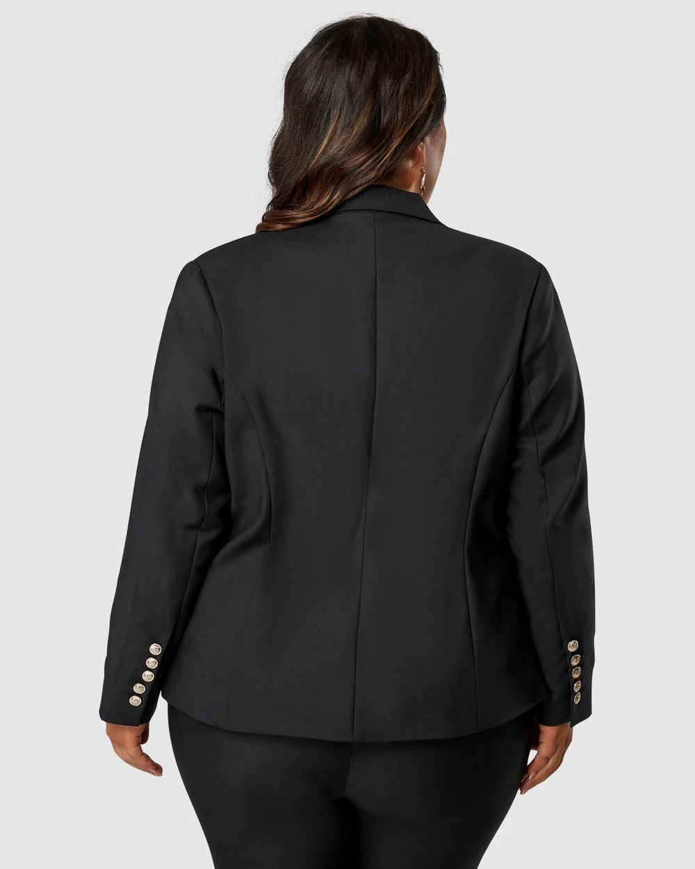 Refine your wardrobe with the Madeleine Button Blazer from Something 4 Olivia. Featuring a cut away double breasted button front design with button featured cuffs, this style is the seasons must have week to weekend blazer.