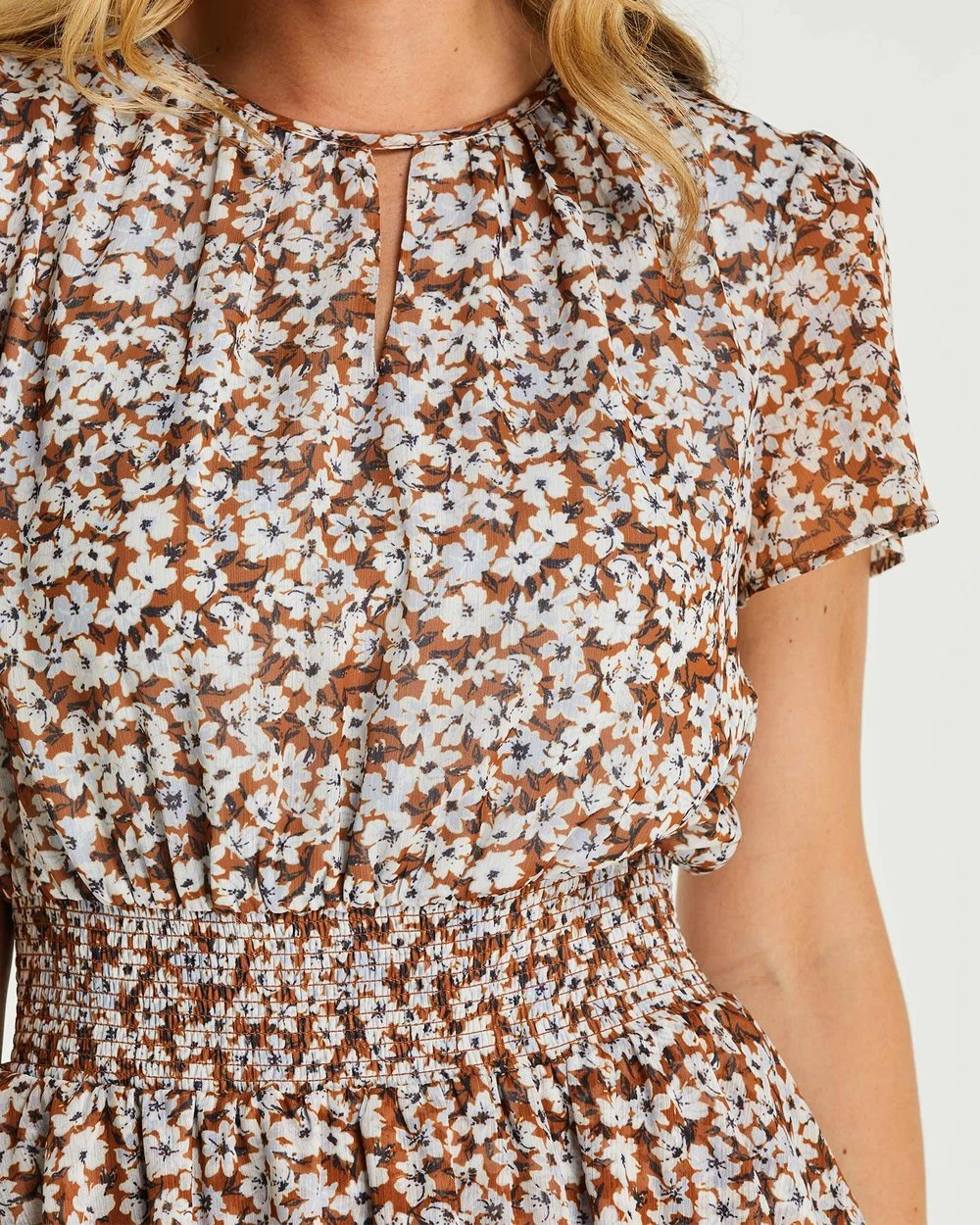 The May Flower Dress by Stella is a lovely tonal floral dress that can easily take you from the office to the bar.