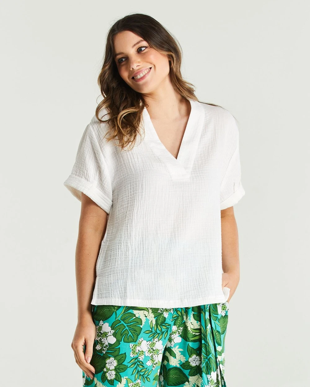 Simple but chic, the Sunseeker Top in milk by Stella offers the versatility to take you from beach to bar.