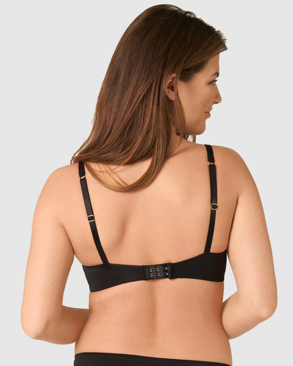 – Softly padded hook & eye closure