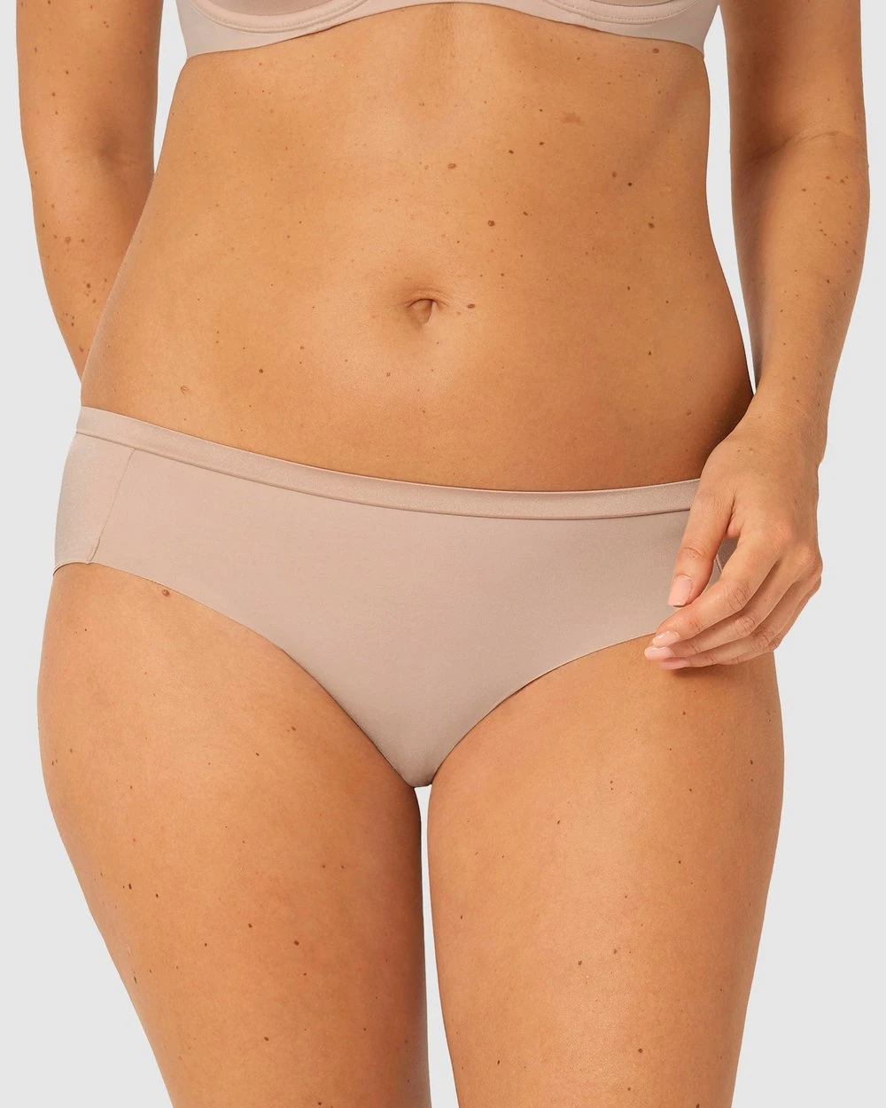– Low-rise, nude hipster brief with wider sides
