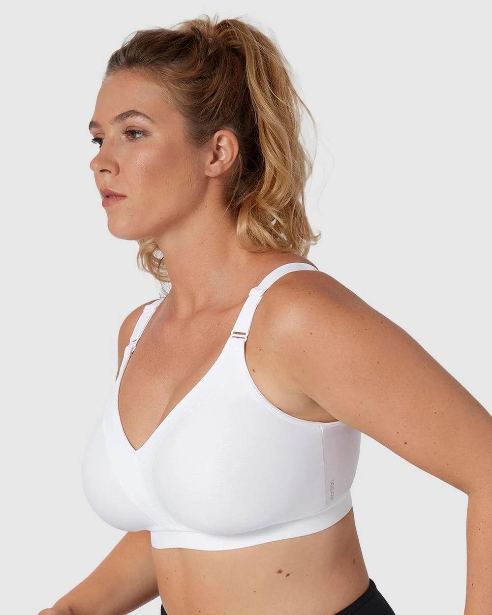 – Non-wired, unpadded white bra