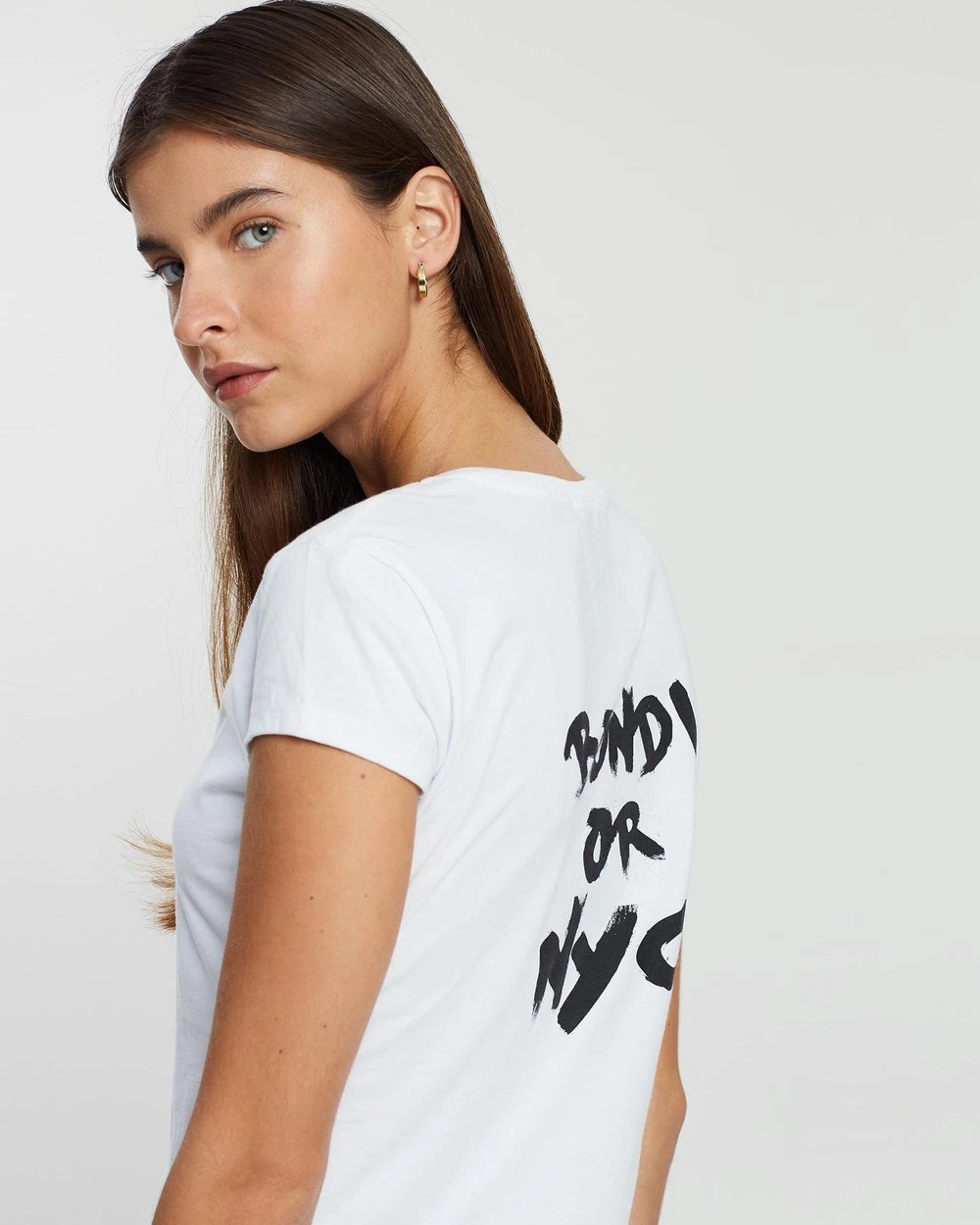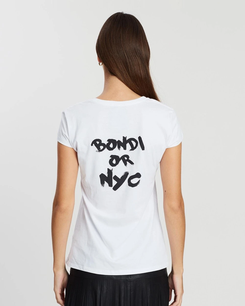 – BONDI OR NYC paint-style print to the back in black