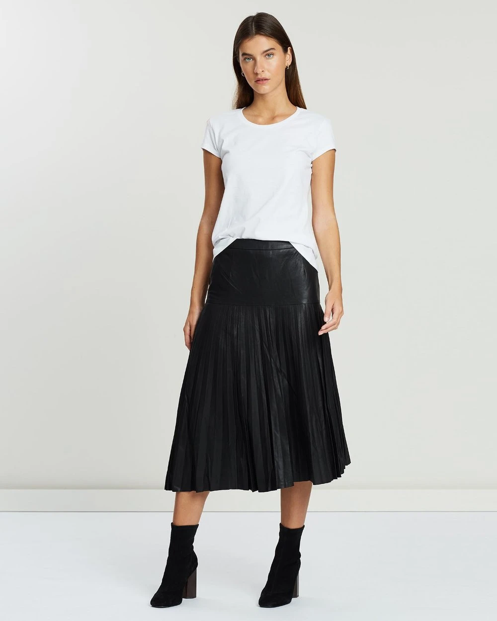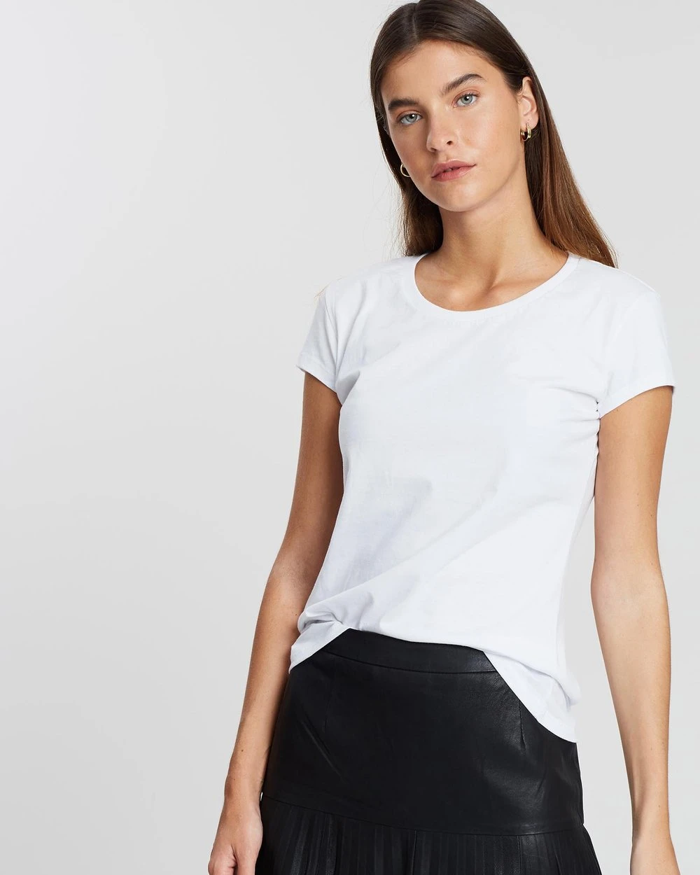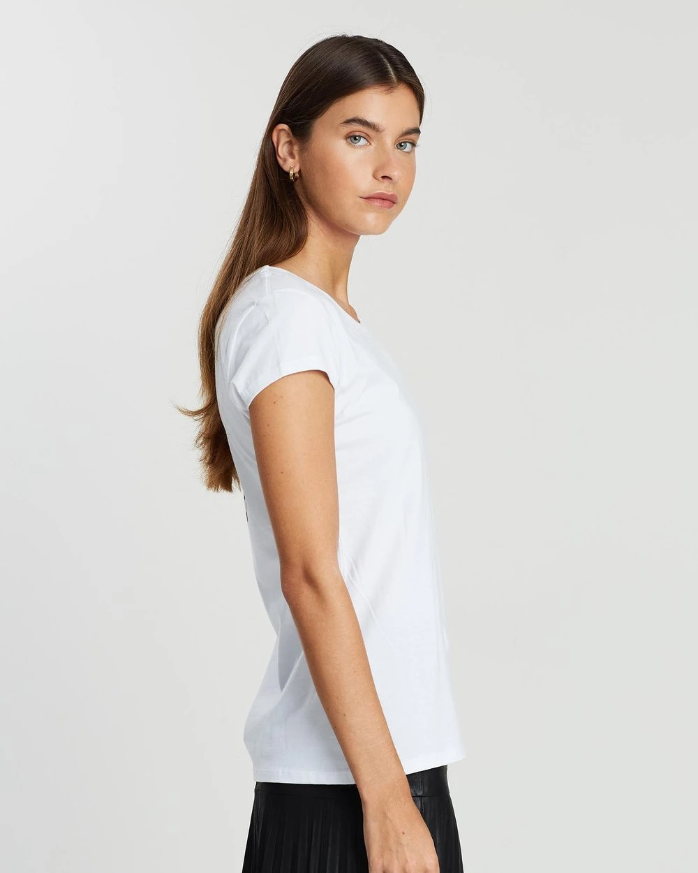 Our model is wearing a size small T-shirt. She is 176.5cm (5’9.5”) tall with an 83.8cm (33”) bust, a 59.7cm (23.5”) waist and 88.9cm (35”) hips.