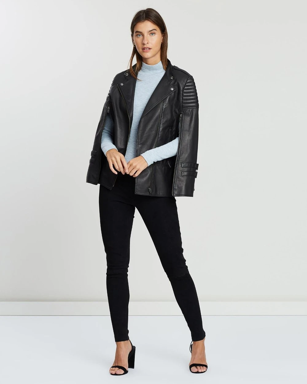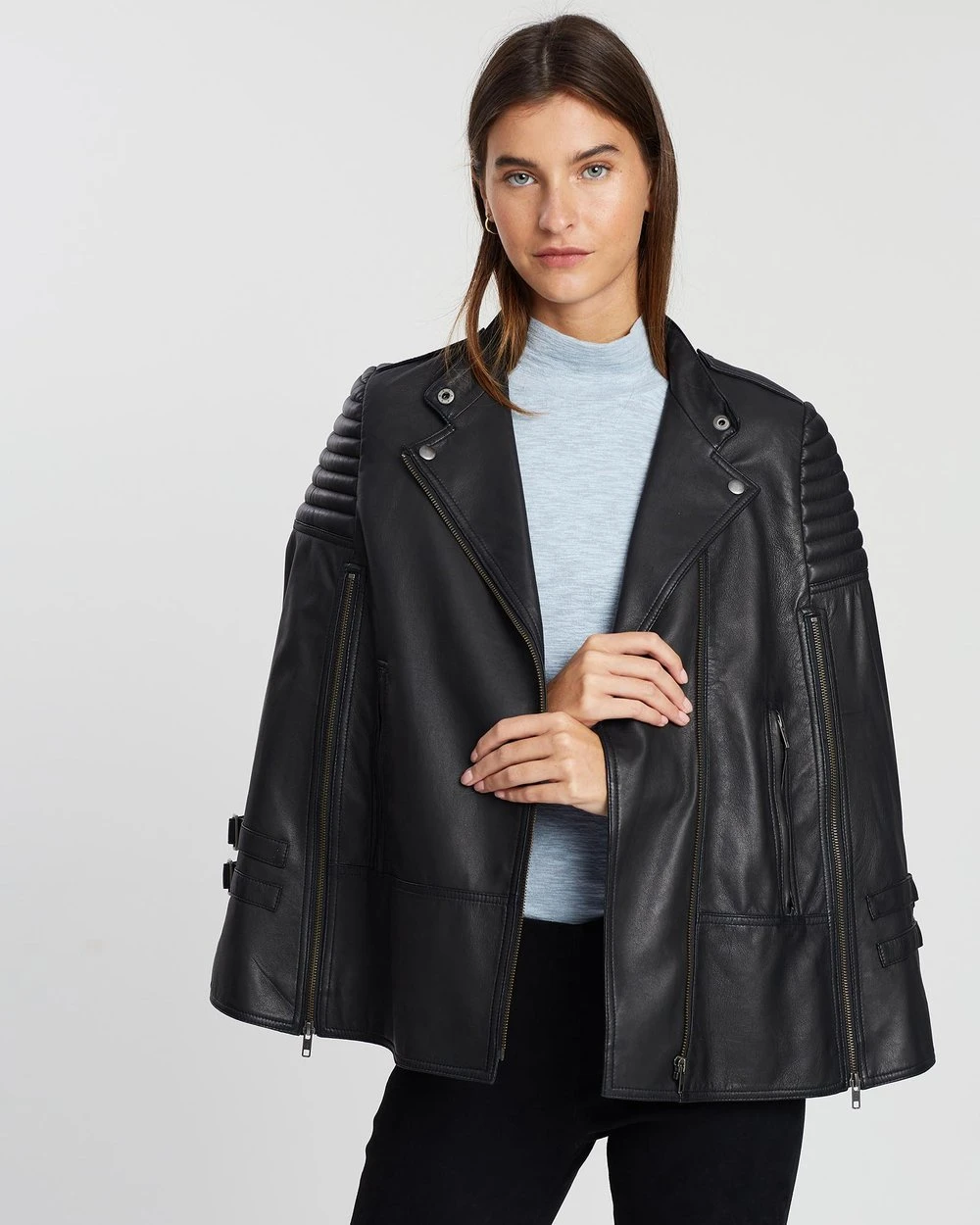 Crafted from soft, premium lamb leather, the Crosby Leather Cape by West 14th is bound to become a cooler weather staple in your wardrobe for years to come. The black cape unzips at the sides to sit comfortably on your shoulders.