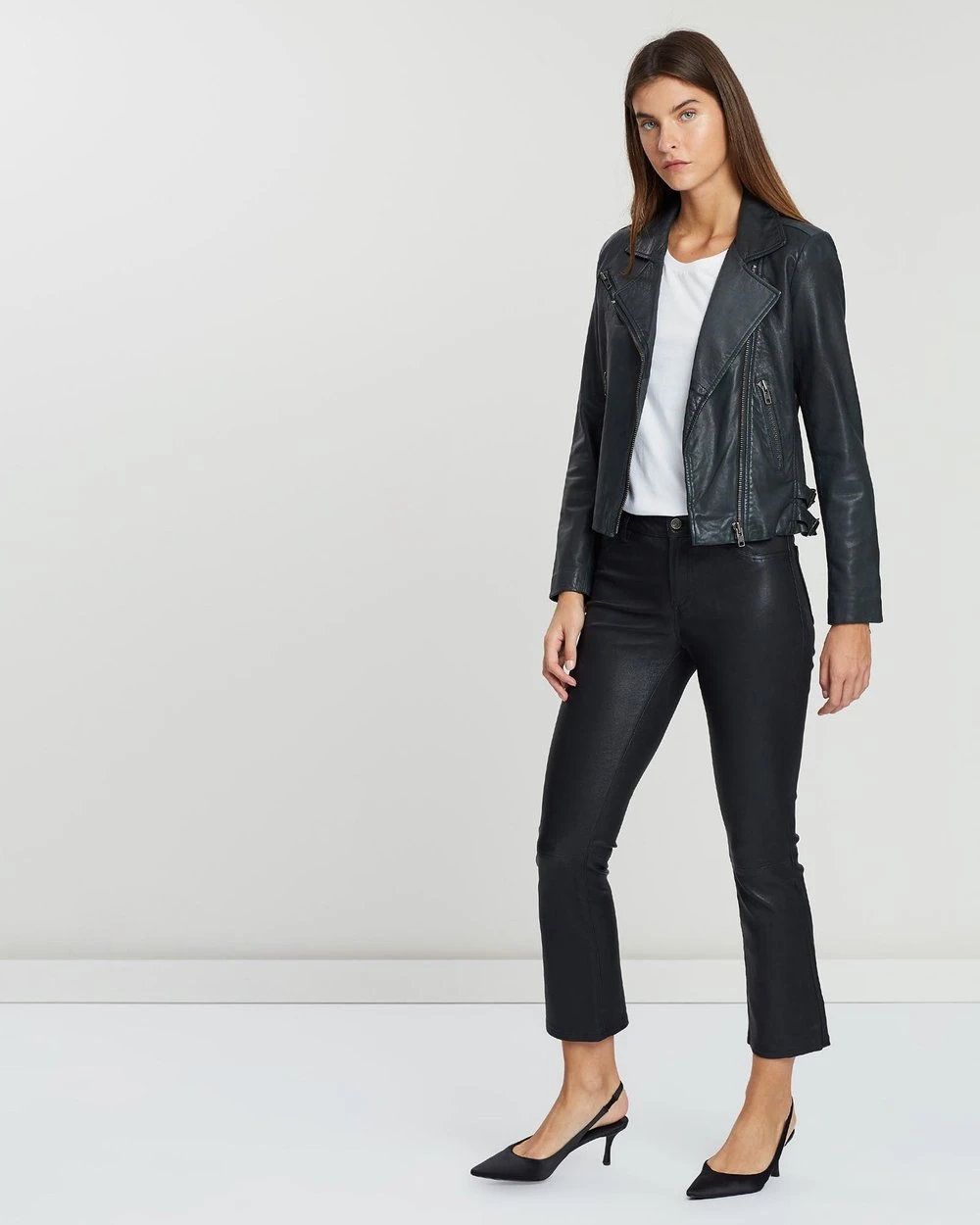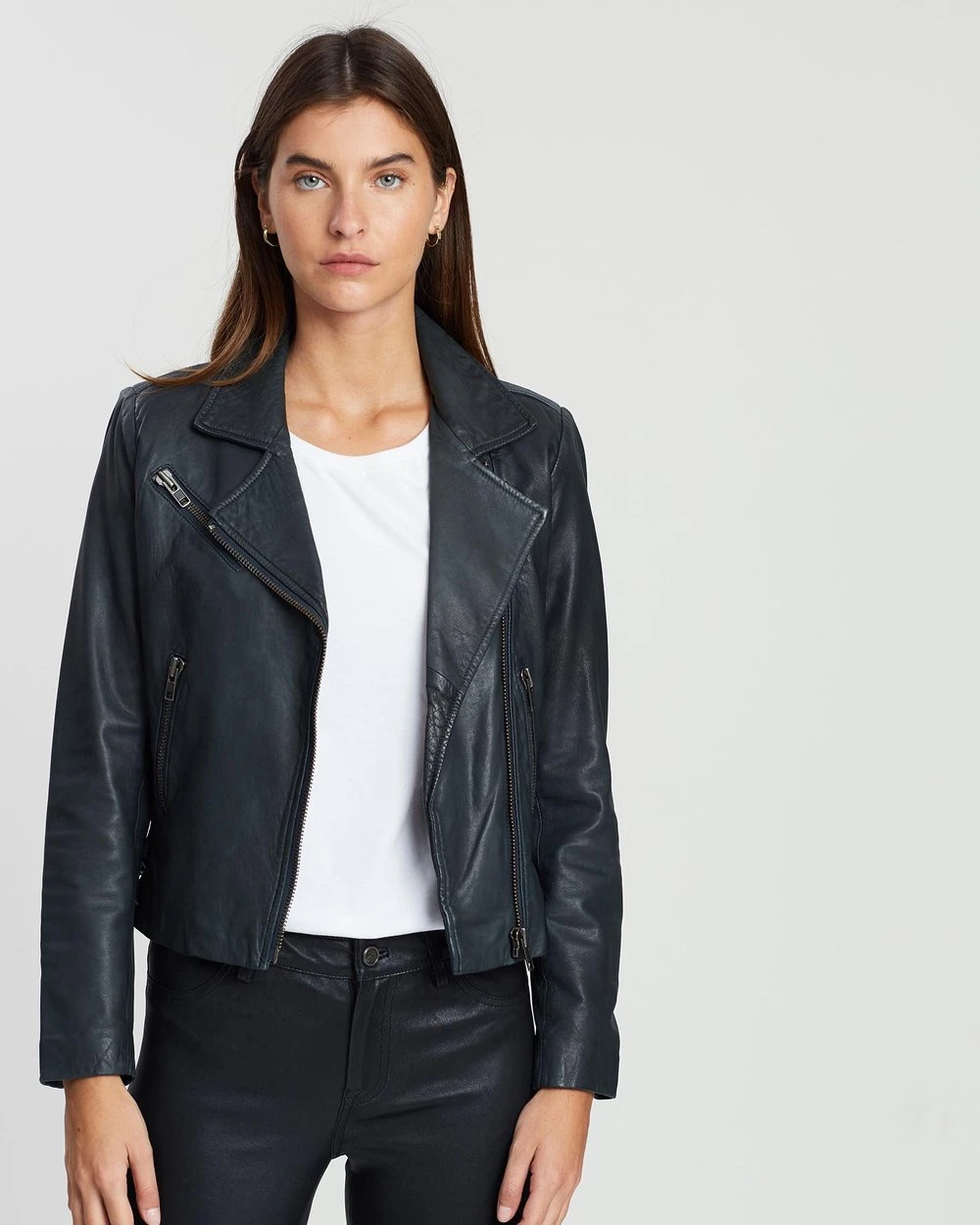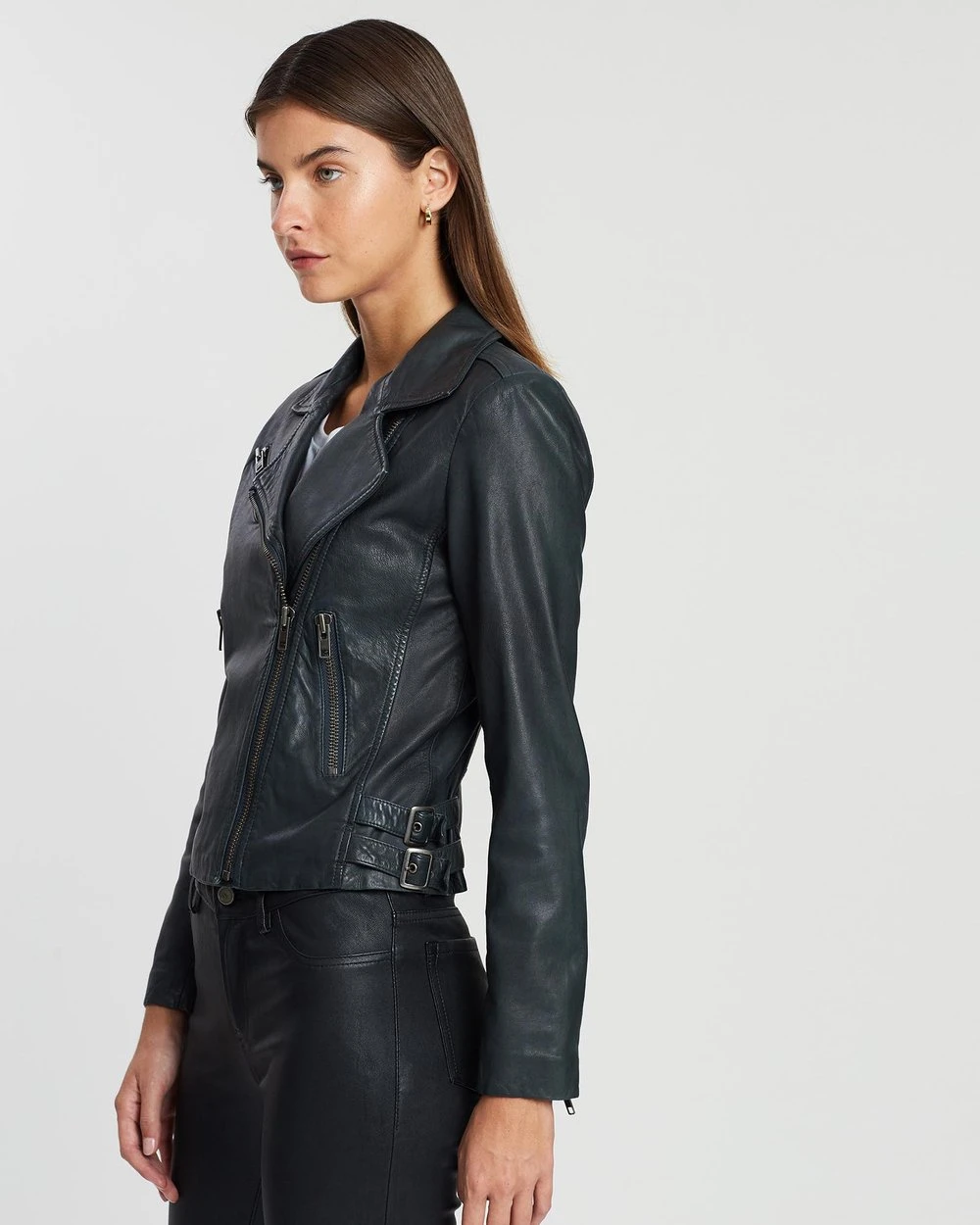 The lamb leather West 14th New Yorker Motor Jacket features traditional biker hallmarks like a wide collar, buckled tabs and an off-centre front zip fastening.