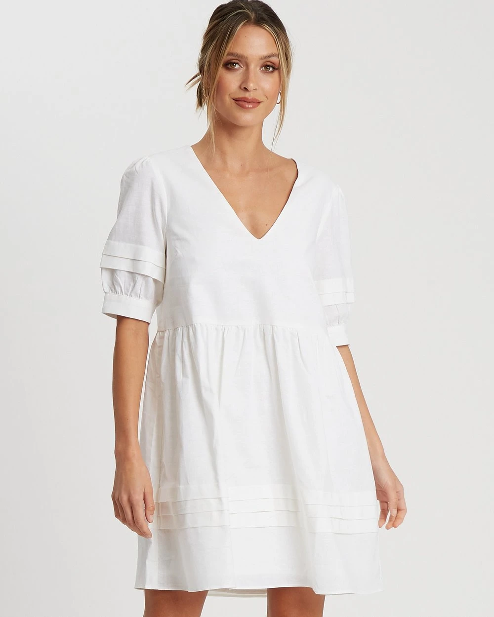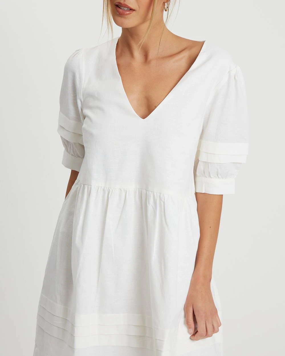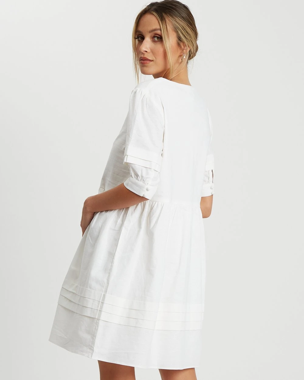 – Tuck detailing on sleeve and skirt